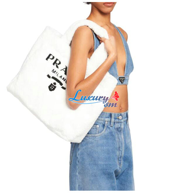 [스페셜오더]PRADA-1BG130 프라다 화이트 시어링 테리 토트 백