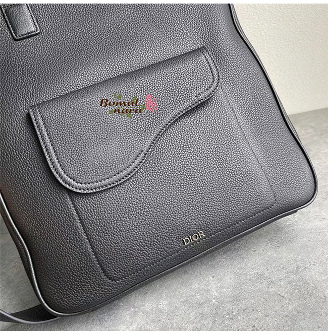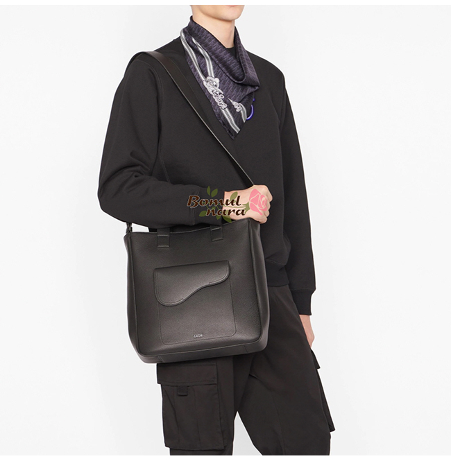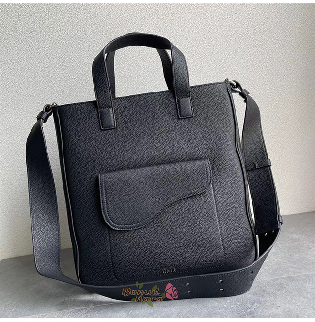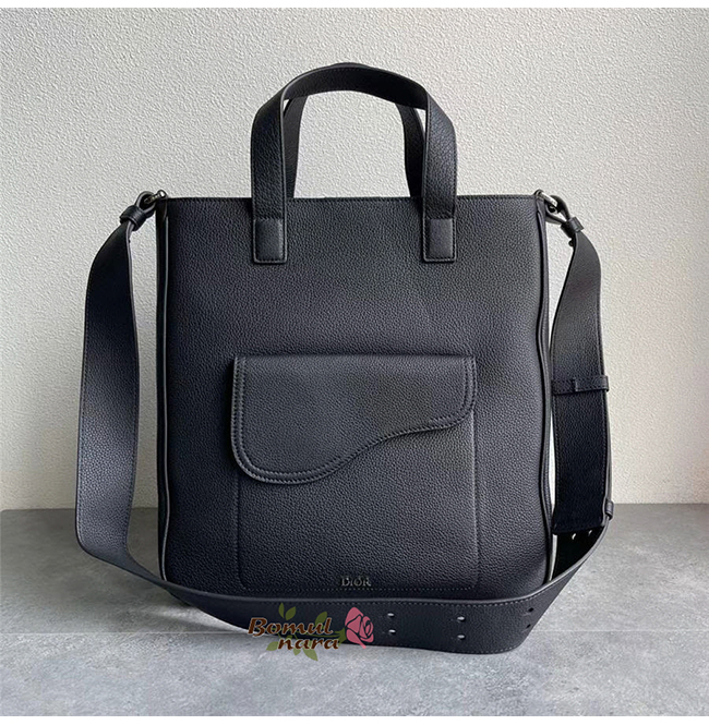 CHRISTIAN DIOR-1ADSH 디올 블랙 카프스킨 가죽 SADDLE 숄더 스트랩 토트 백