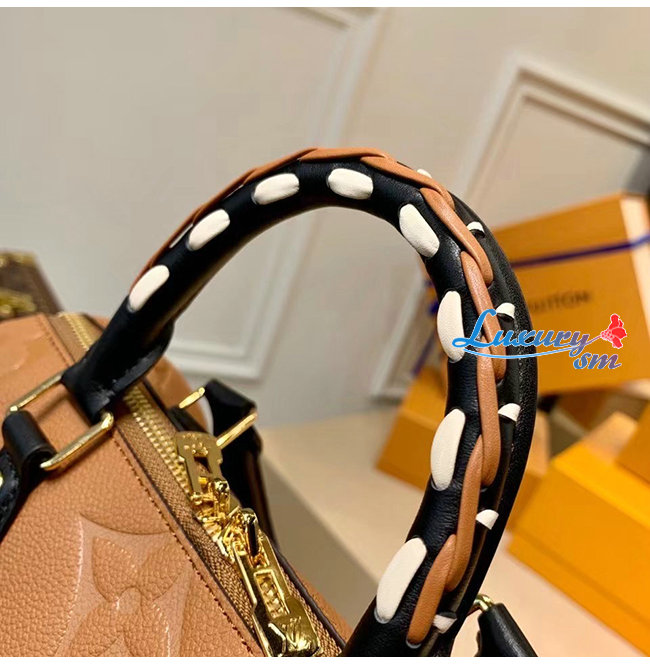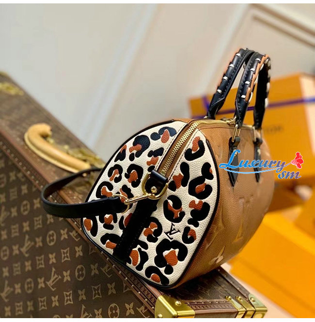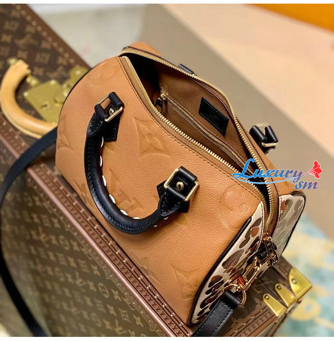 [스페셜오더]LOUIS VUITTON-M45840 루이비통 카라멜 모노그램 앙프렝뜨 레오파드 프린트 스피디 반둘리에 25