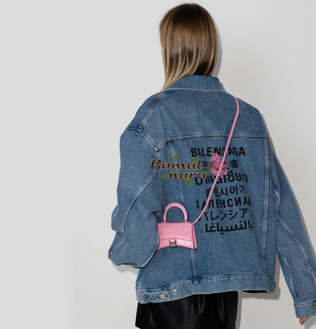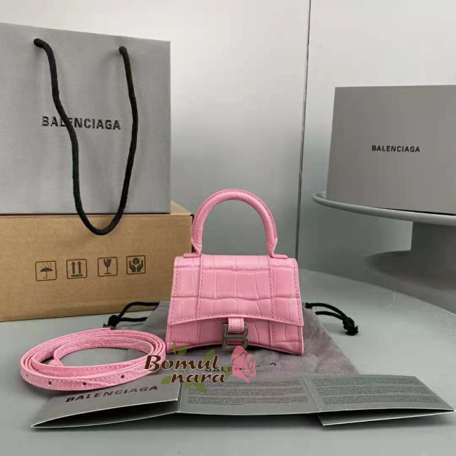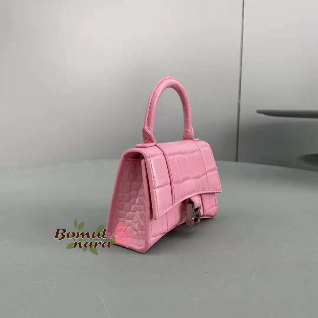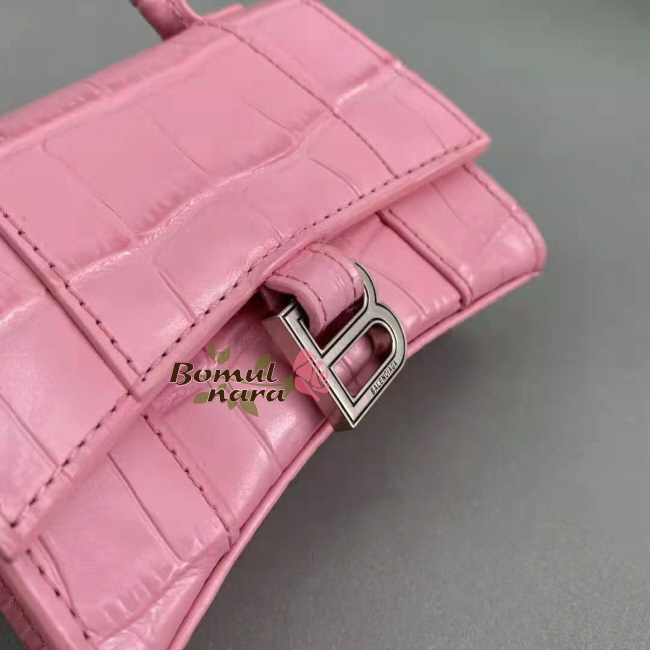 [스페셜오더]BALENCIAGA-6373721 발렌시아가 핑크 아워글래스 크로커다일 엠보싱 미니 탑 핸들 백
