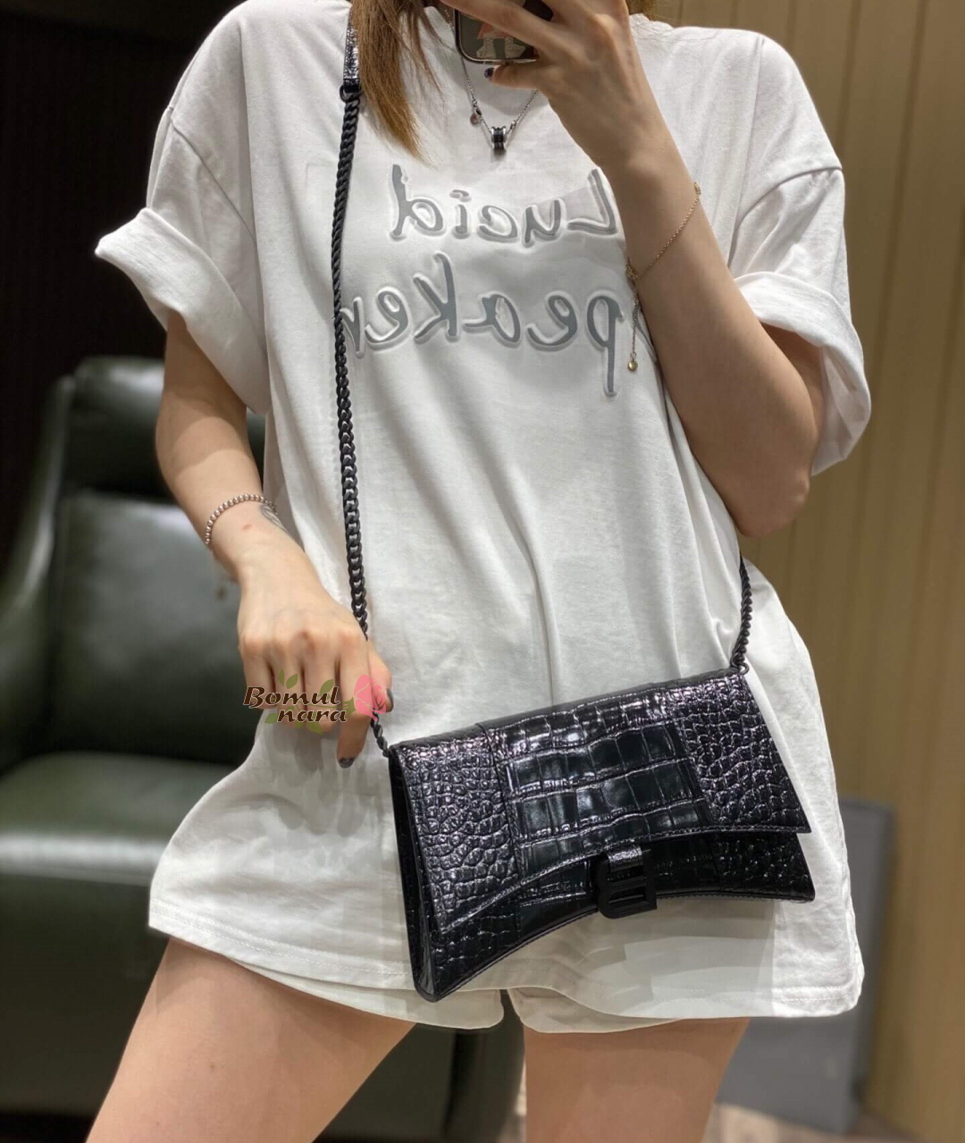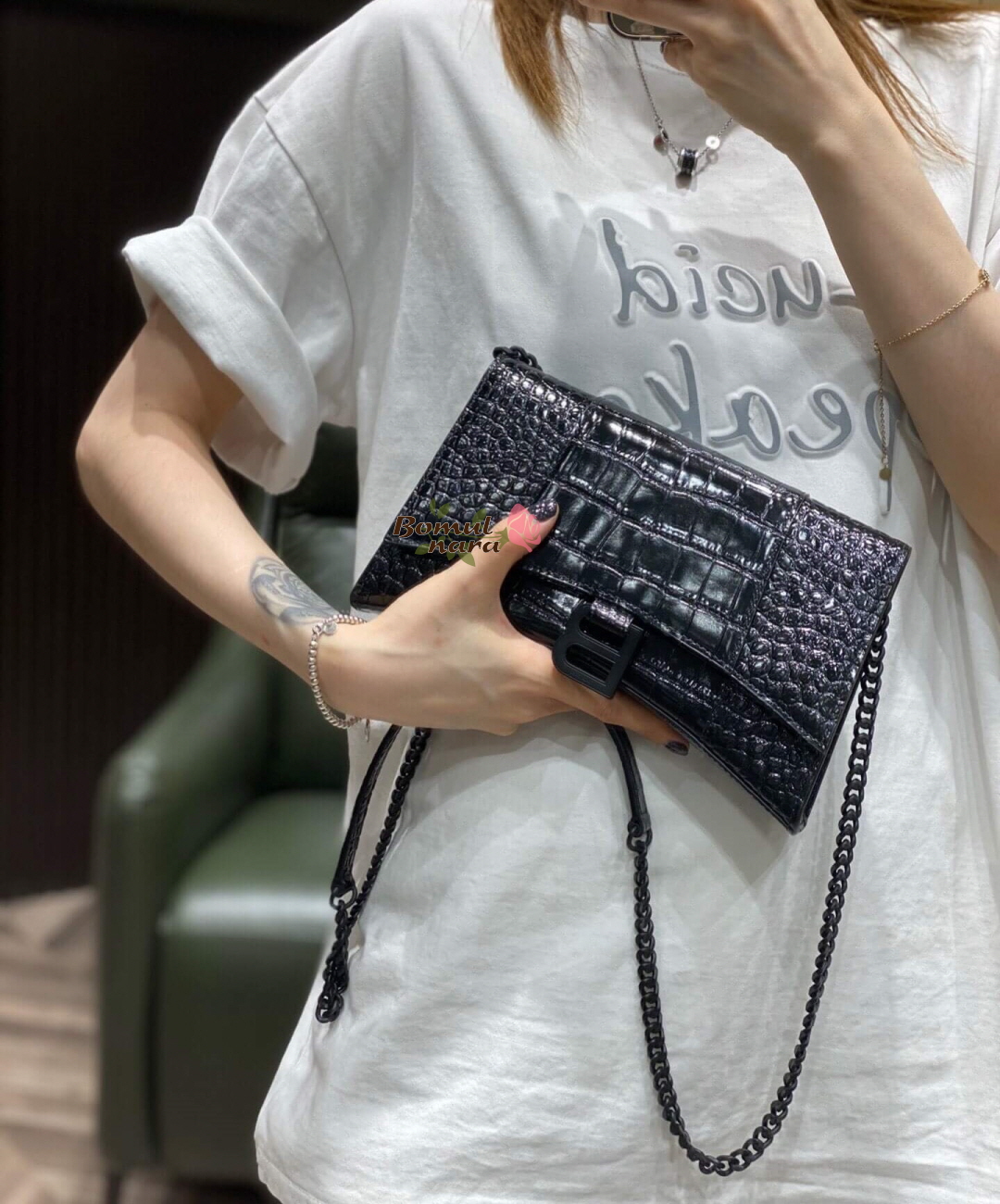 [스페셜오더]BALENCIAGA-644973 발렌시아가 블랙 아워글래스 이븐 체인 숄더백 가격 : 360,000원