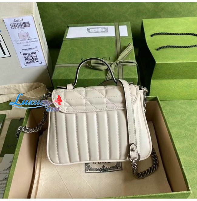 [스페셜오더]GUCCI-583571 9022 구찌 GG 마몽 화이트 가죽 미니 탑 핸들백
