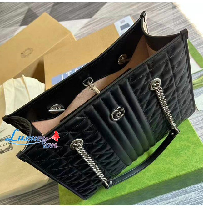 [스페셜오더]GUCCI-675796 1000 구찌 GG 마몽 블랙 가죽 미디업 토트백