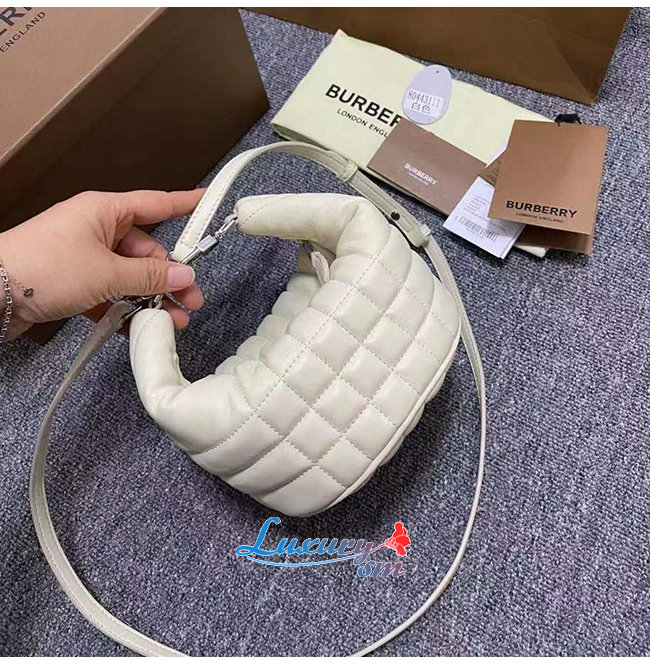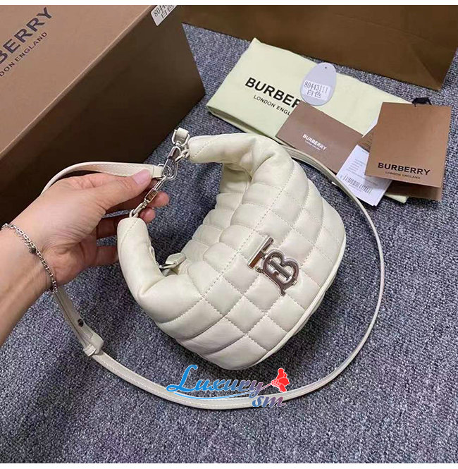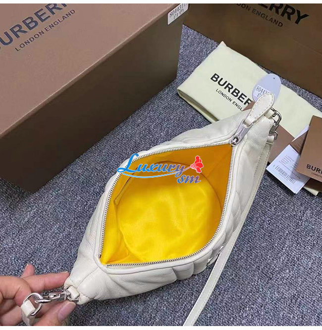 [스페셜오더]BURBERRY-80443131 버버리 화이트 스몰 퀼팅 램스킨 크레센트 롤라 백