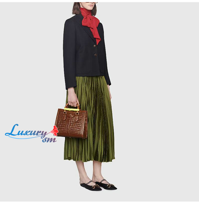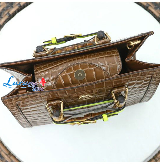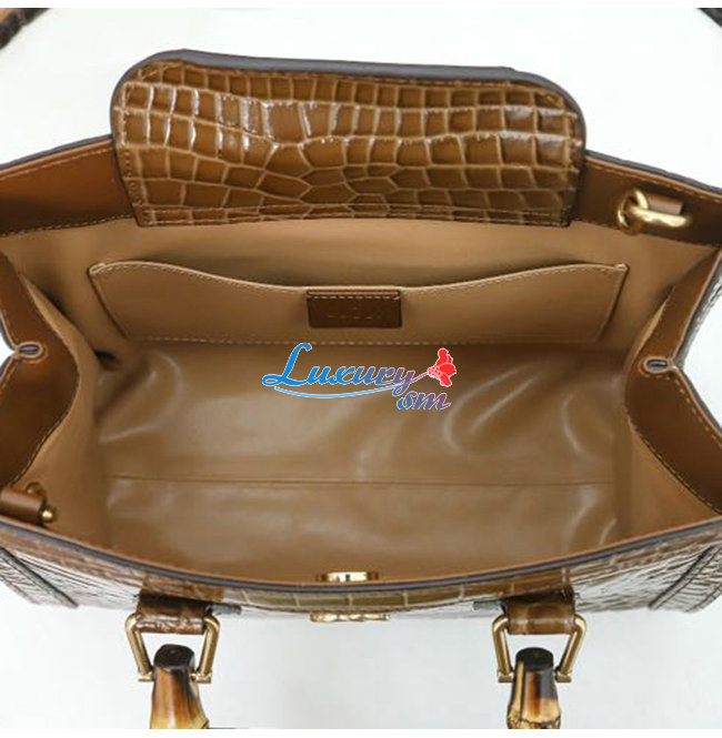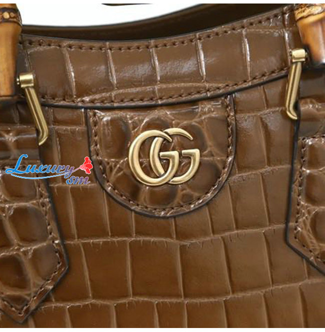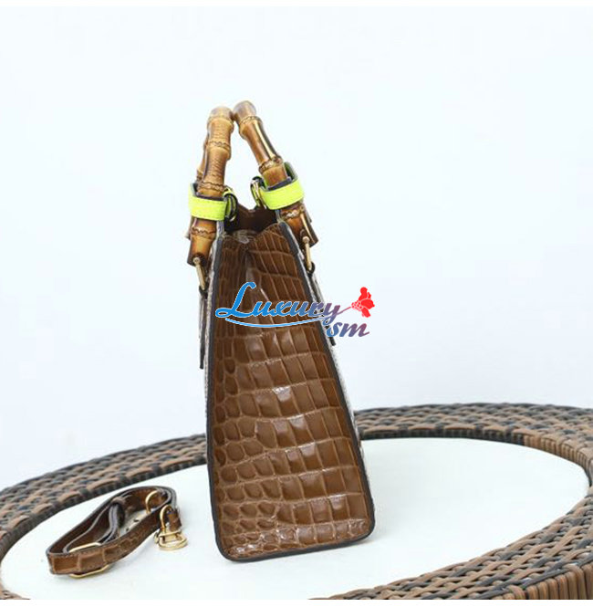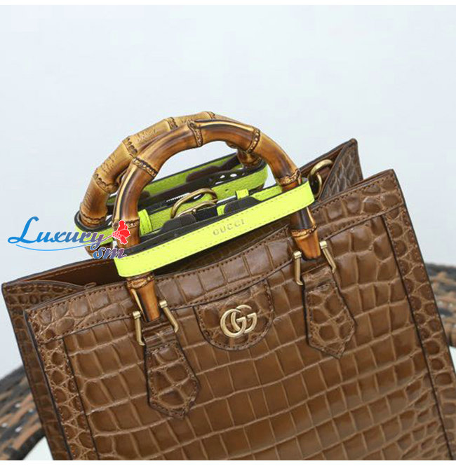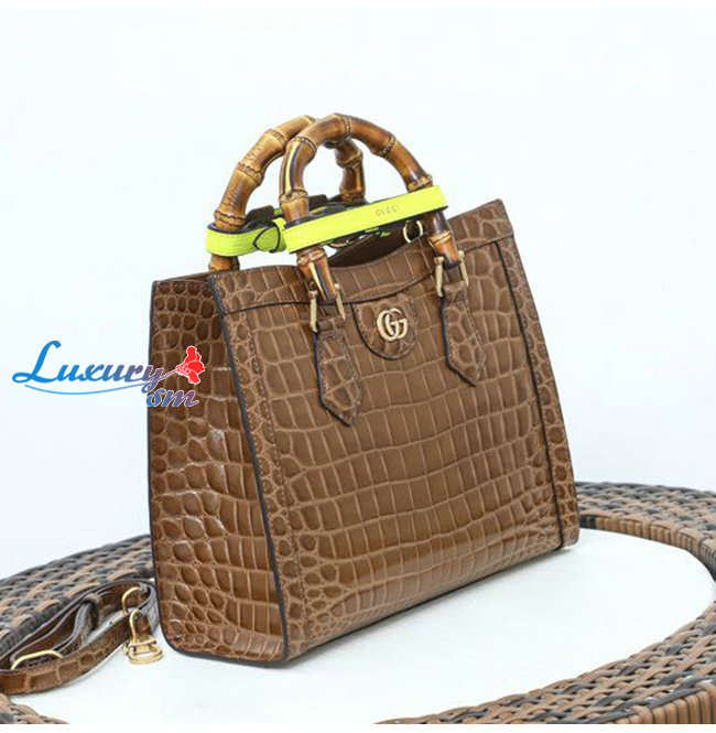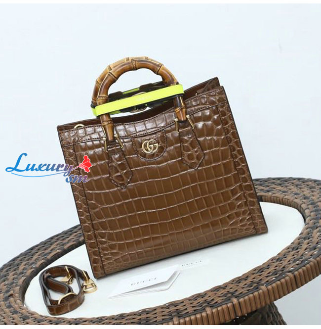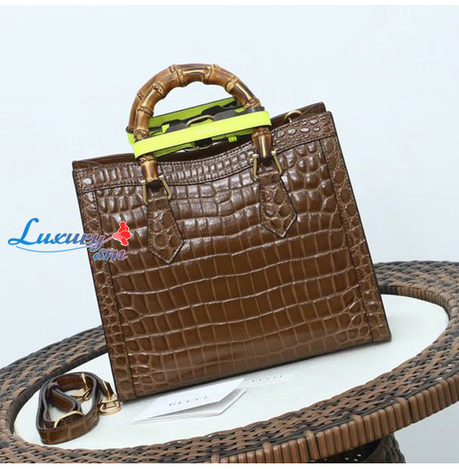 [스페셜오더]GUCCI-660195 2582 구찌 브라운 크로커다일 가죽 다이애나 뱀부 핸들 스몰 토트백