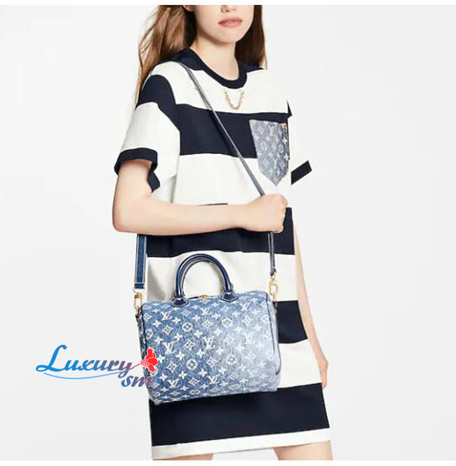 [스페셜오더]LOUIS VUITTON-M59609 루이비통 네이비 모노그램 데님 스피디 반둘리에 25
