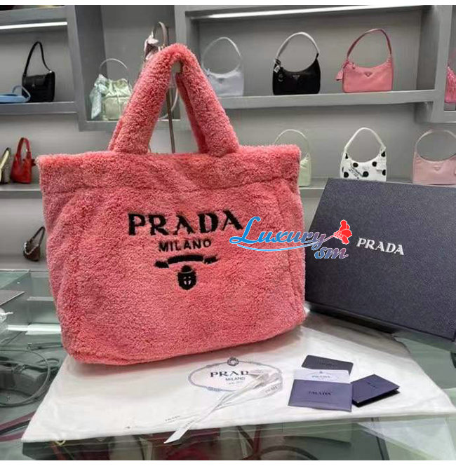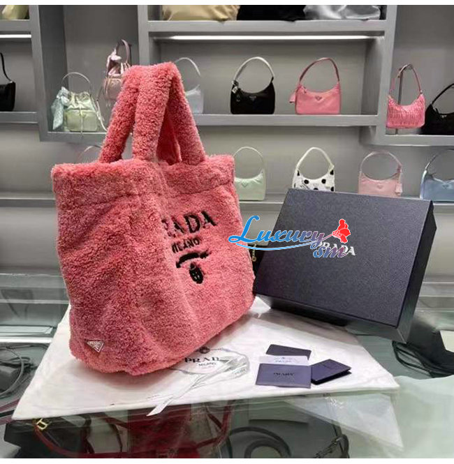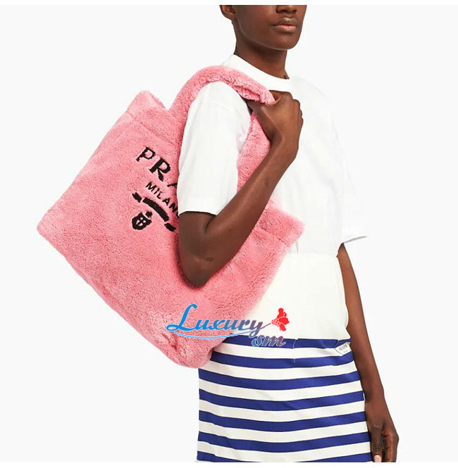 [스페셜오더]PRADA-1BG130 프라다 핑크 시어링 테리 토트 백
