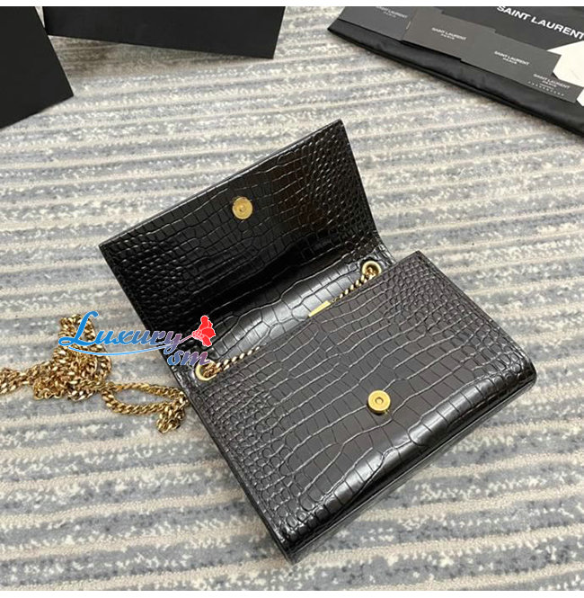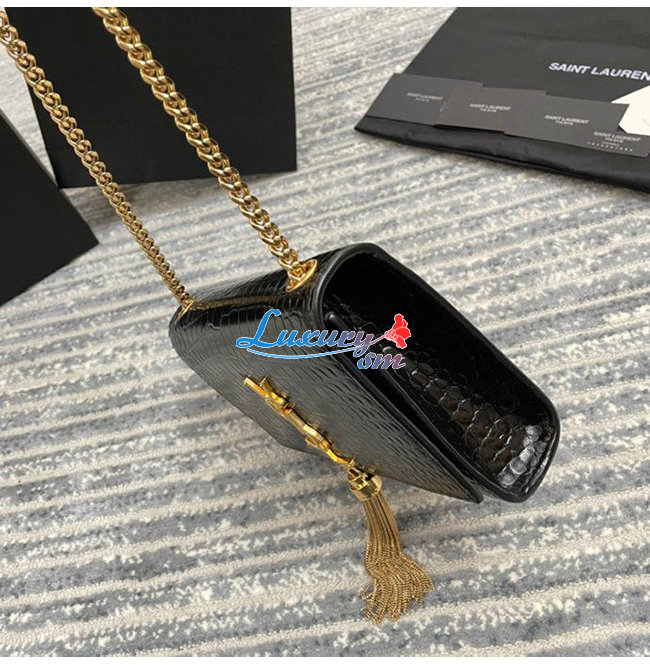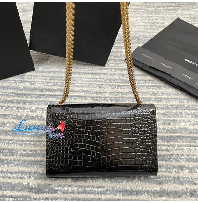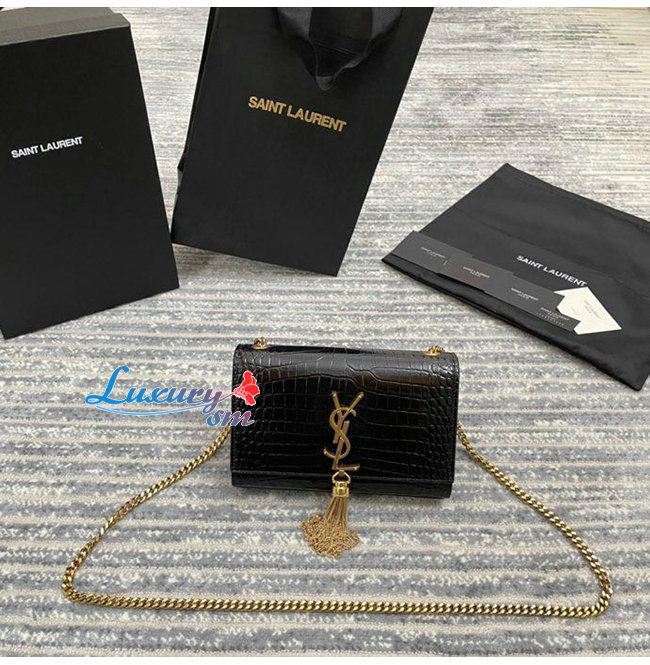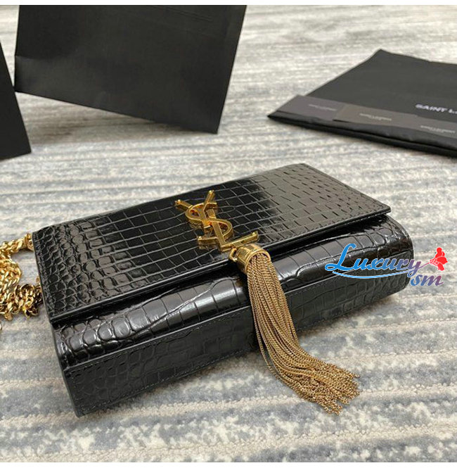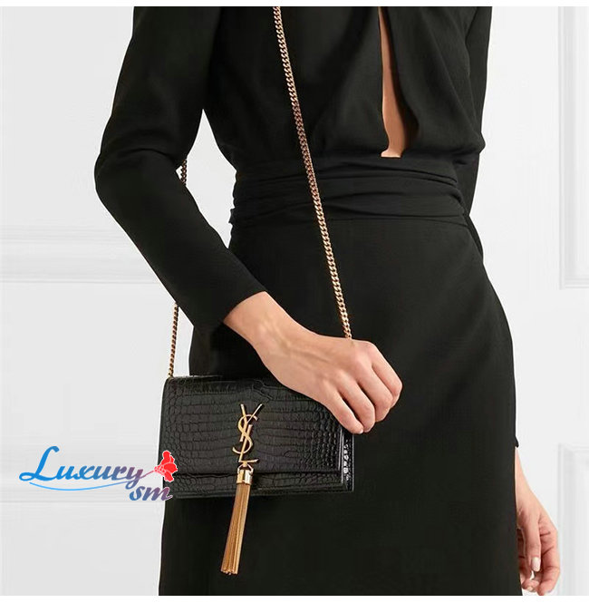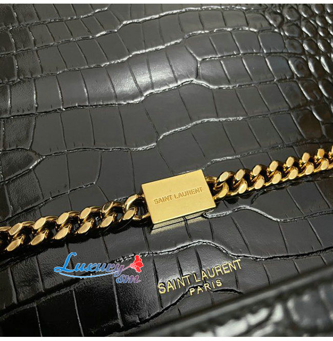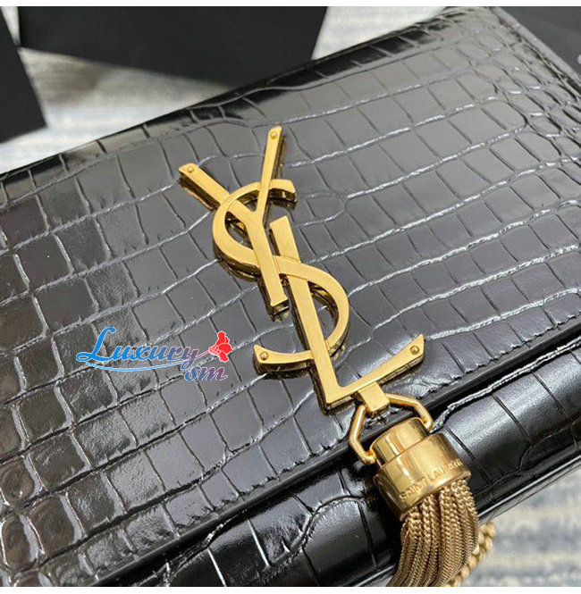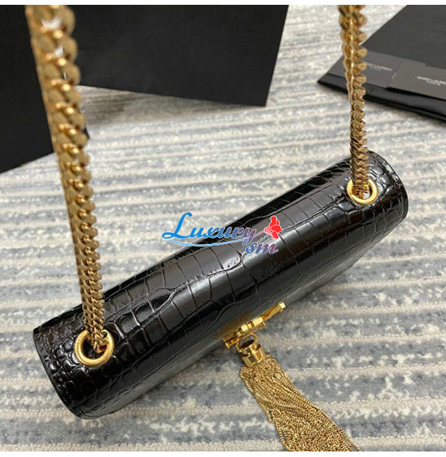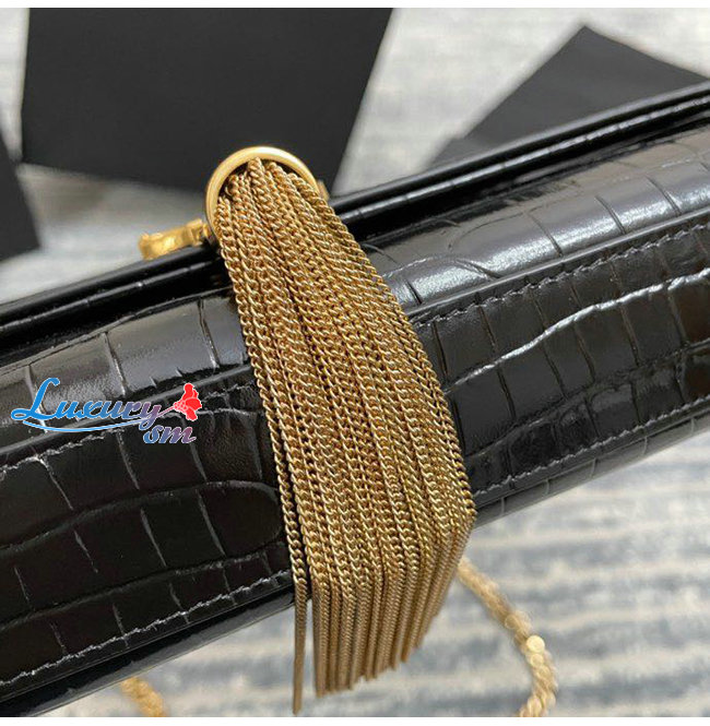 [스페셜오더]SAINT LAURENT-474366 생 로랑 블랙 크로커다일 골드 메탈 스몰 케이트 체인 태슬 백