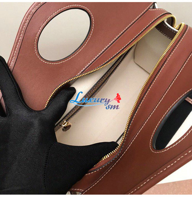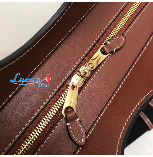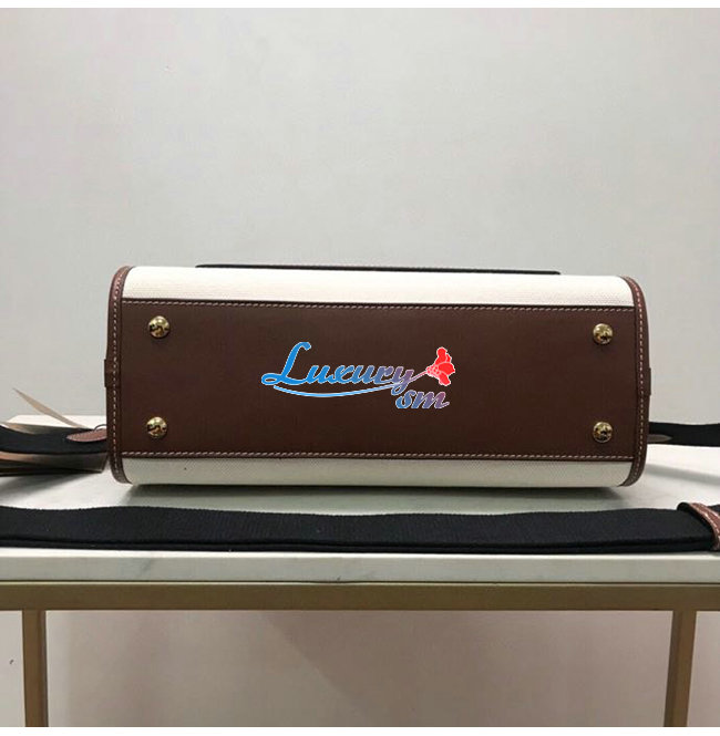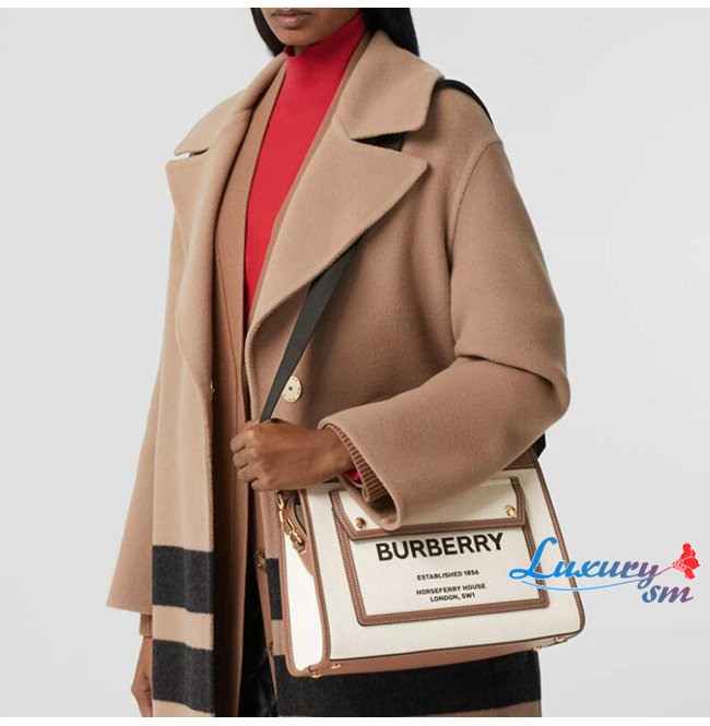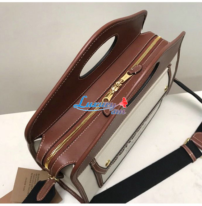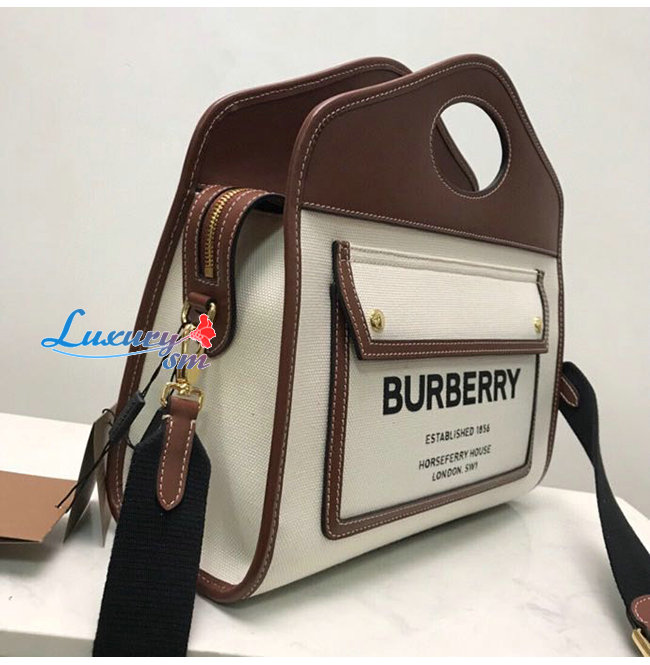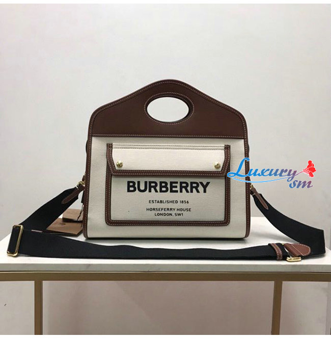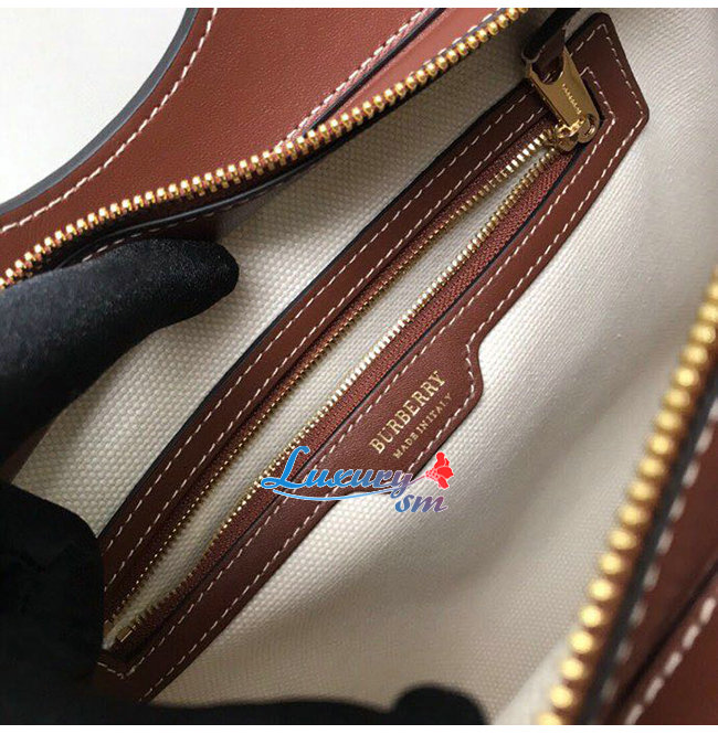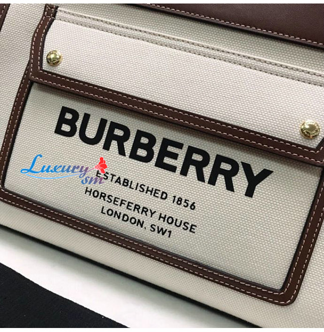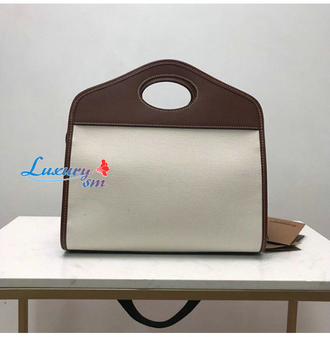 [스페셜오더]BURBERRY-80367841 버버리 브라운 스몰 투톤 캔버스 레더 포켓 토트