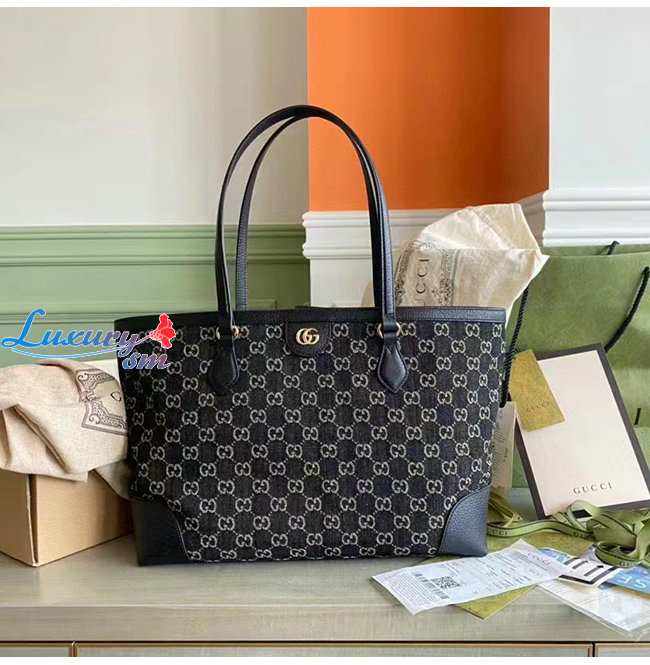 [스페셜오더]GUCCI-631685 8375 구찌 블루 오피디아 GG 오가닉 데님 미디엄 토트백
