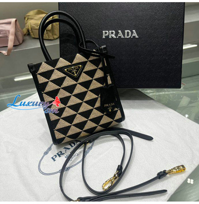 [스페셜오더]PRAD*-1BA355 프라다 블랙 심볼 자카드 패브릭 마이크로 백