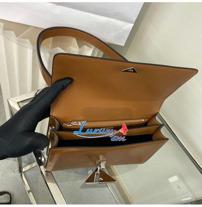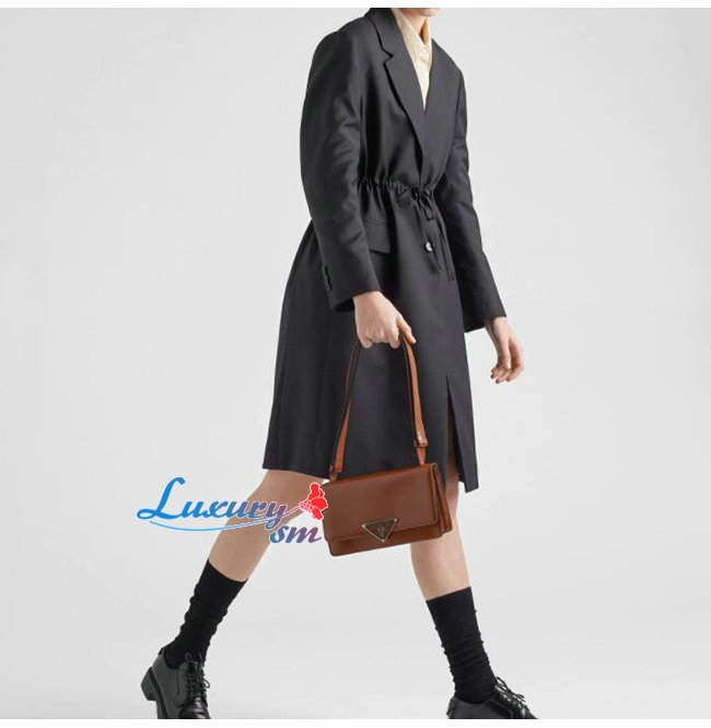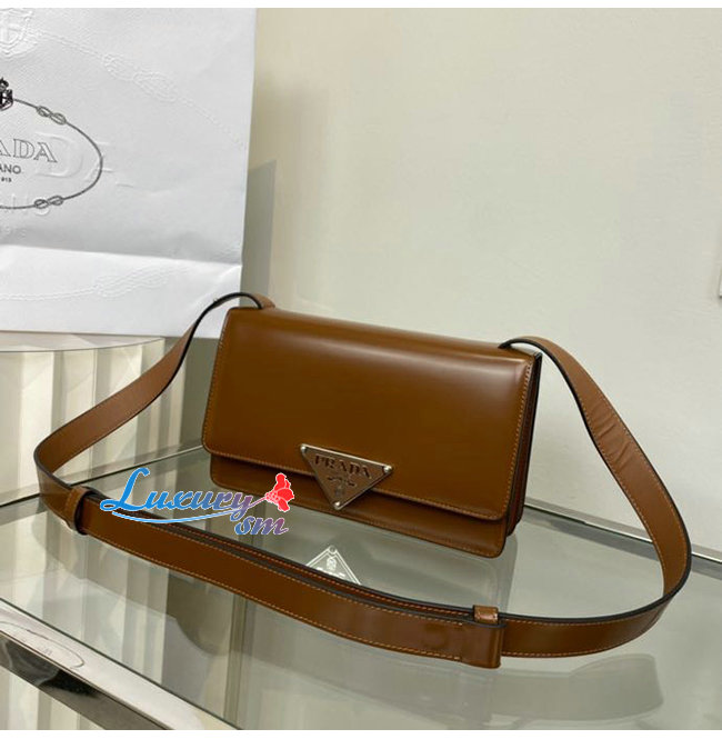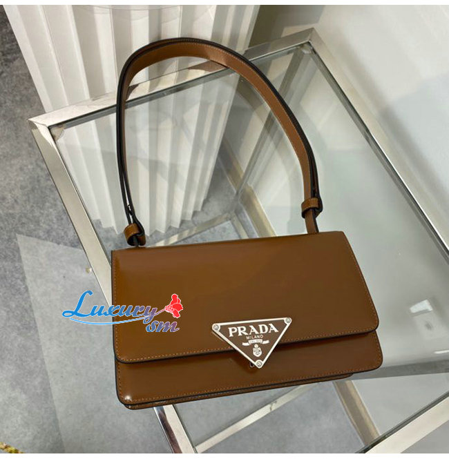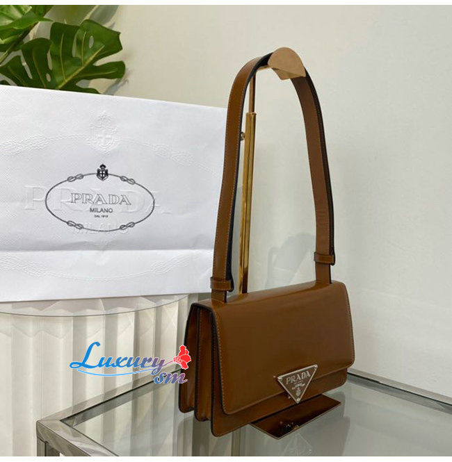 [스페셜오더]PRADA-1BD321 프라다 브라운 엠블럼 브러시드 가죽 숄더 백