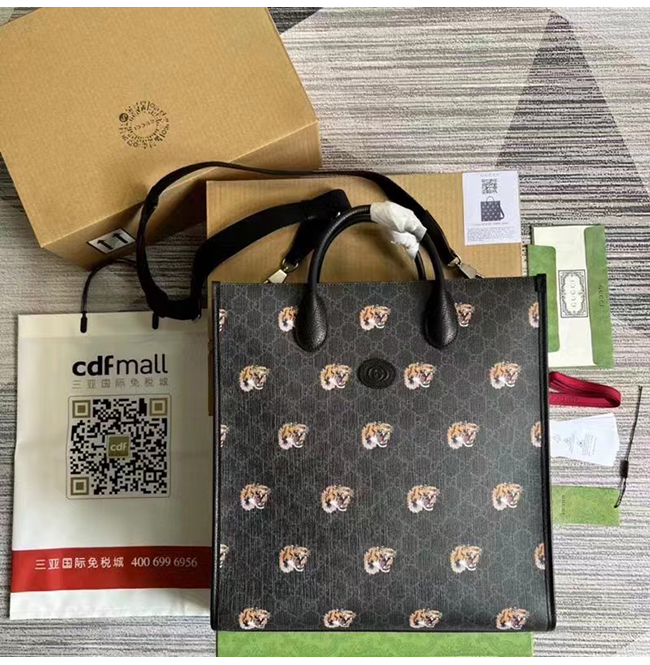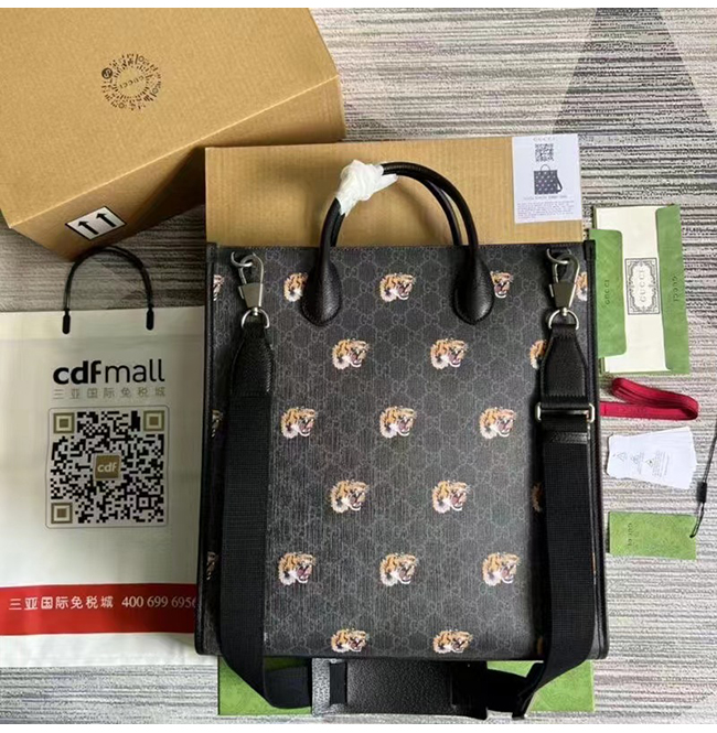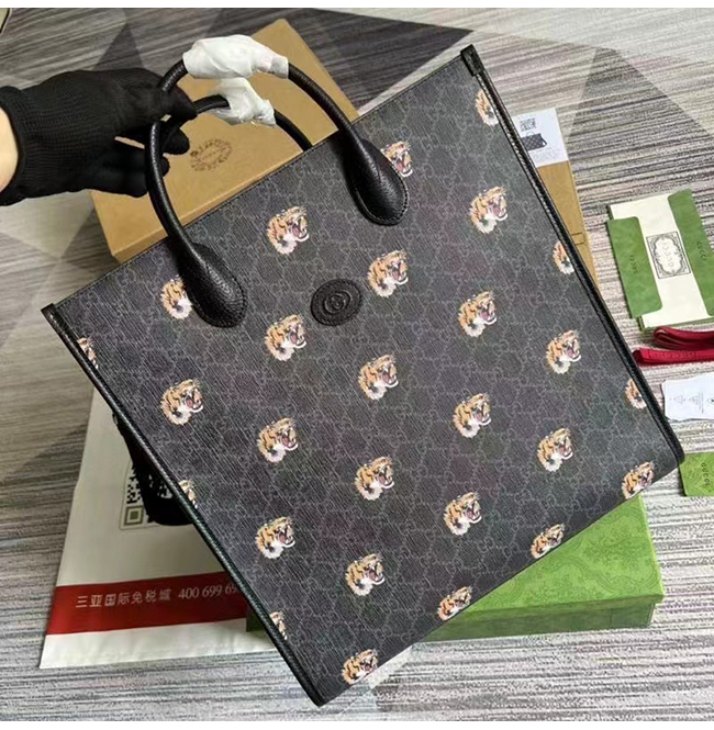 [스페셜오더]GUCCI-674155 1087 구찌 블랙 타이거 프린트 GG 미디엄 토트백