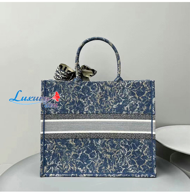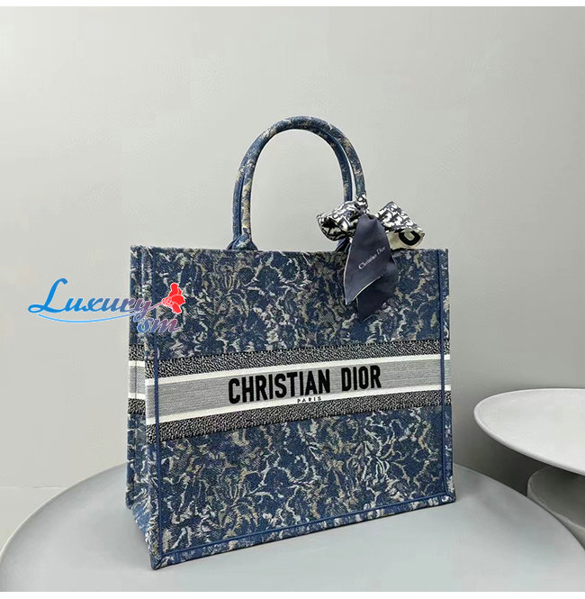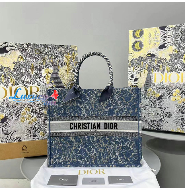 [스페셜오더]DIOR-M1286 디올 블루 Dior Brocart 데님 DIOR BOOK TOTE 라지 백