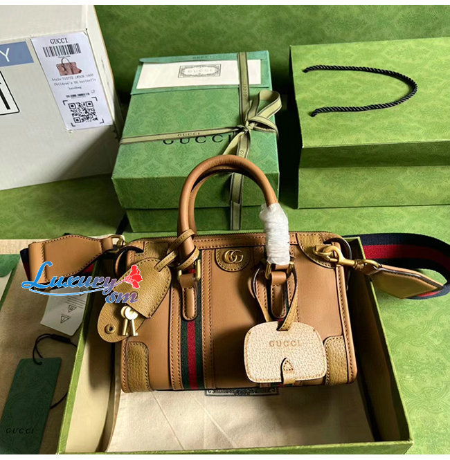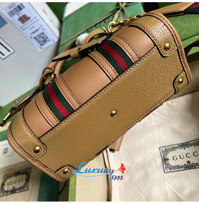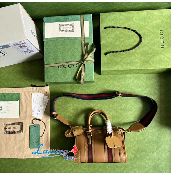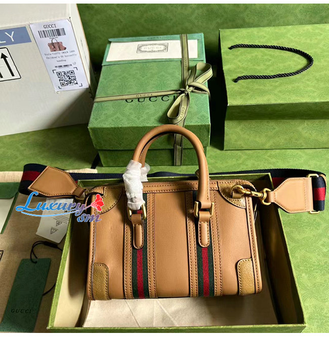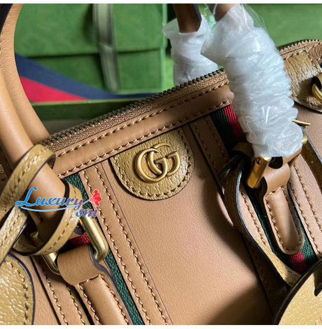 [스페셜오더]GUCCI-715771 9746 구찌 라이트 브라운 가죽 미니 캔버스 탑 핸들백