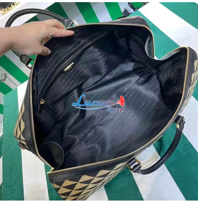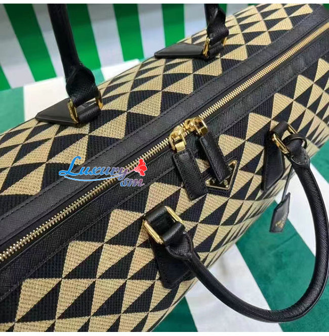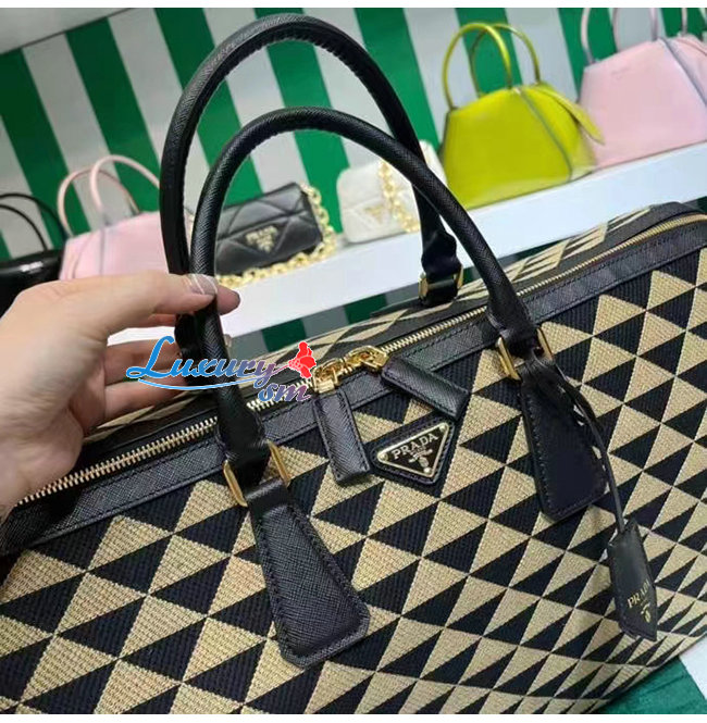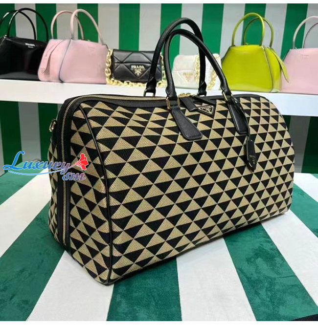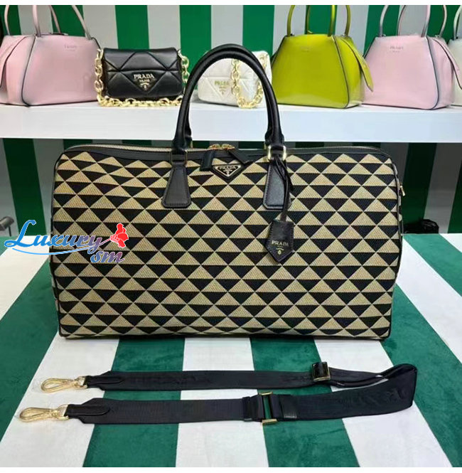 [스페셜오더]PRADA-2VC018 프라다 베이지 심볼 자수 패브릭 트래블 백