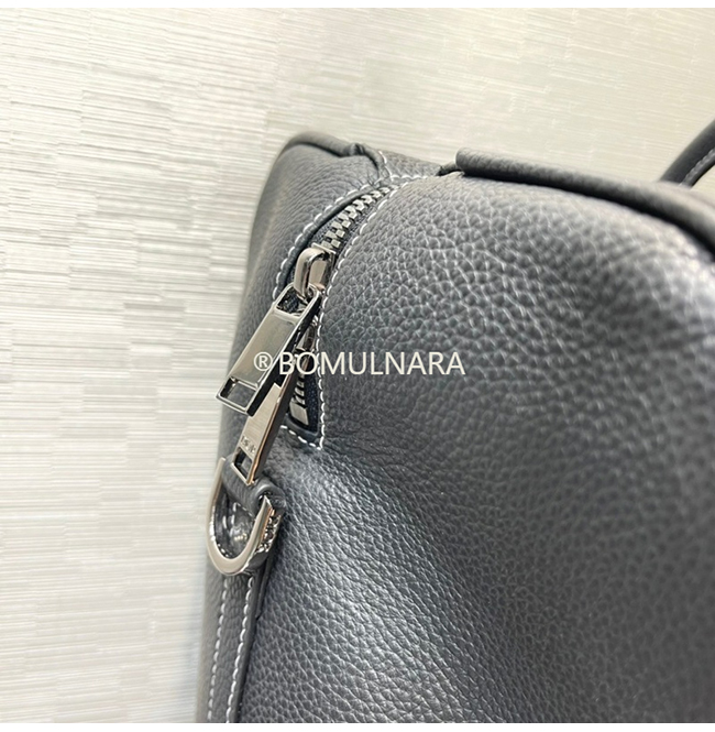 블랙 그레인 송아지 가죽 & 콘트라스트 스티칭