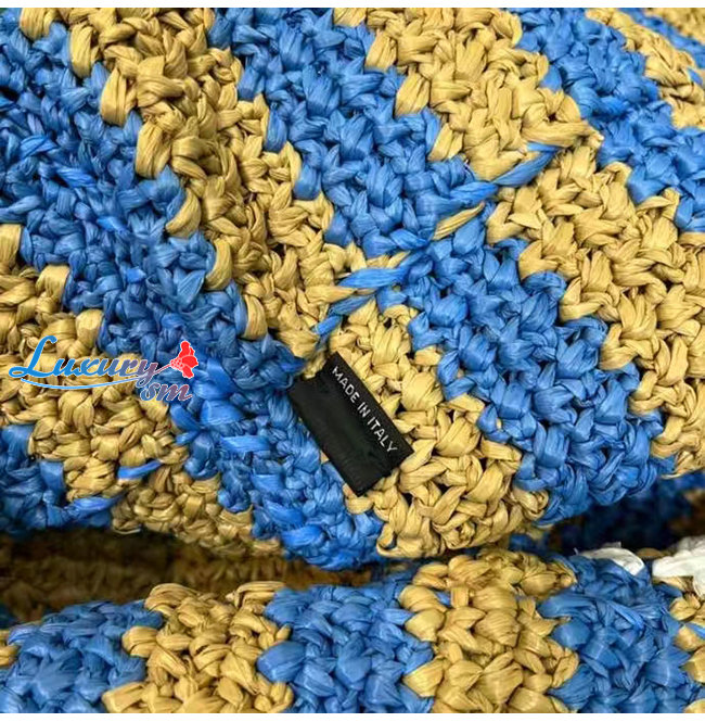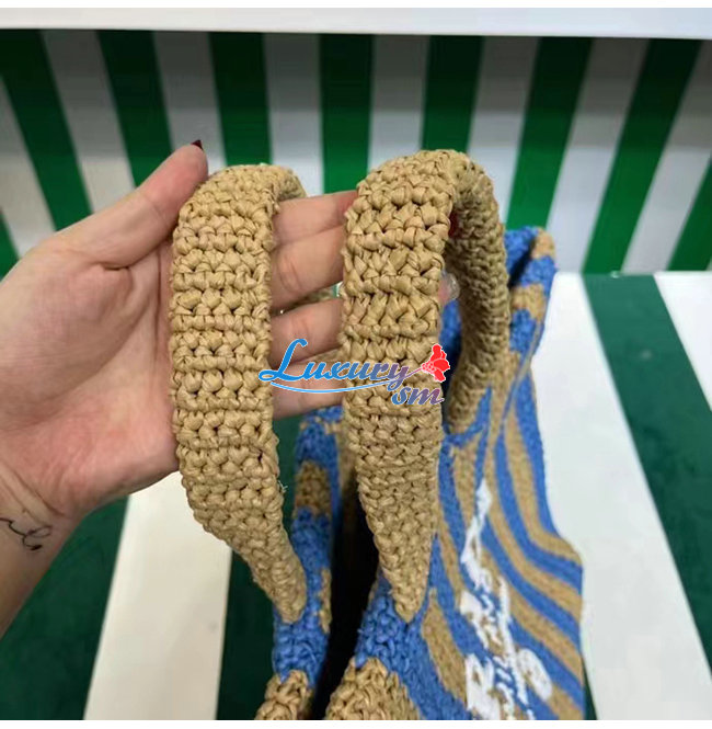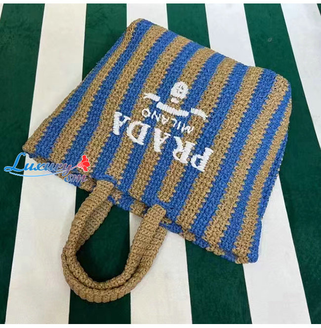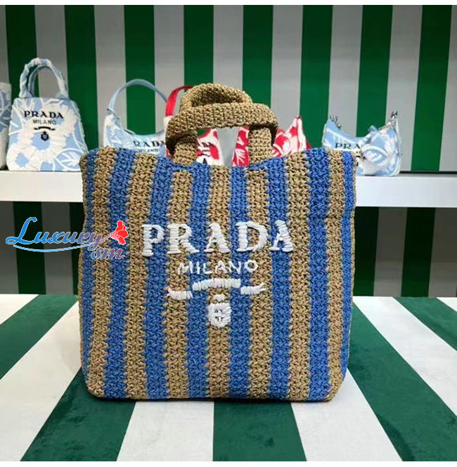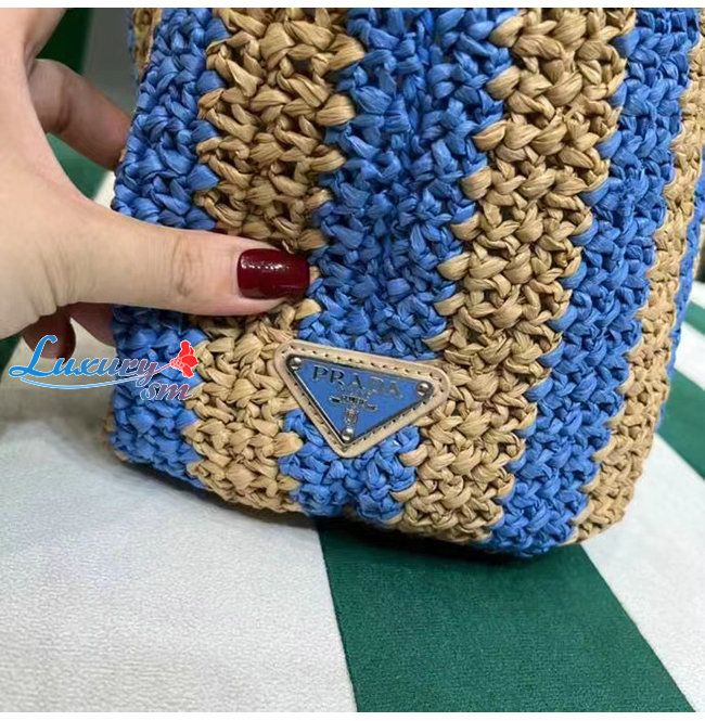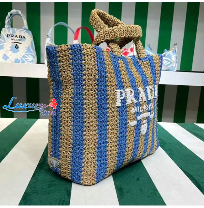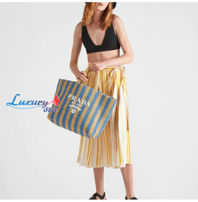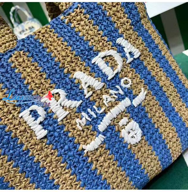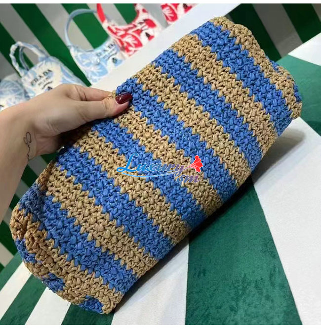 [스페셜오더]PRADA-1BG392 프라다 탠/블루 대형 라피아 토트 백