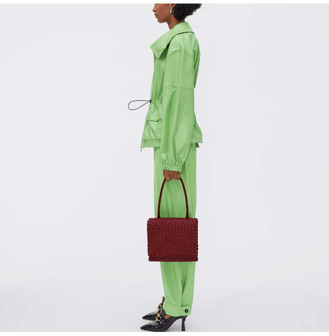 패딩 처리한 가죽 소재를 인트레치오 위빙으로