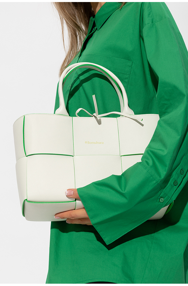 [스페셜오더]BOTTEGA VENETA-652867 보테가 베네타 화이트 맥시 인트레치아토 스몰 아르코 토트 백