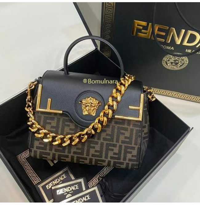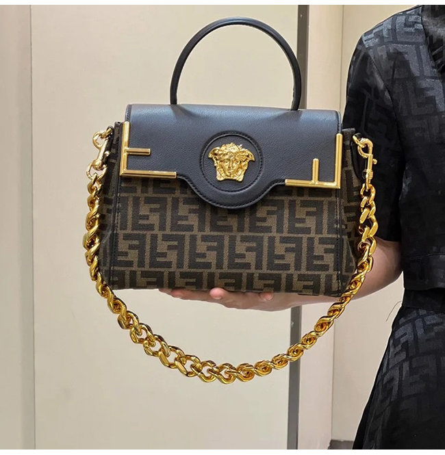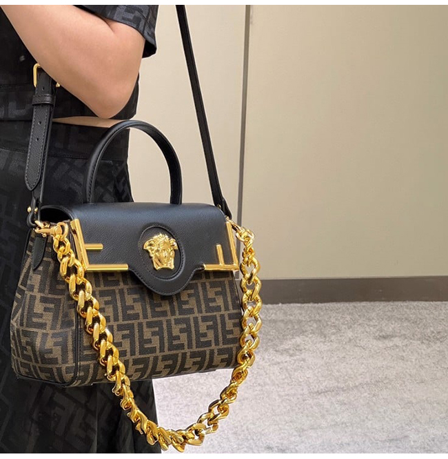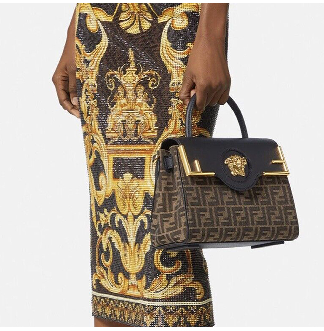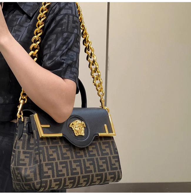 [스페셜오더]FENDI X VERSACE DBFI039 펜디 X 베르사체 펜다체 메두사 FF 프린트 미디엄 핸드백