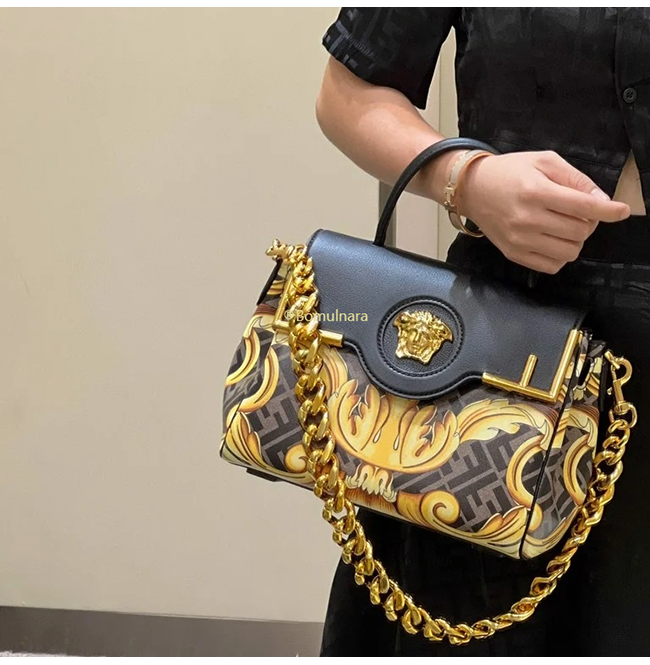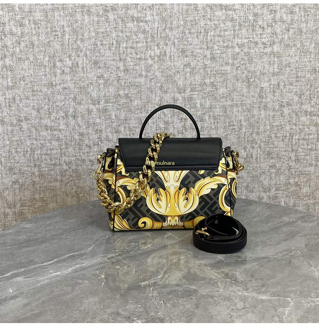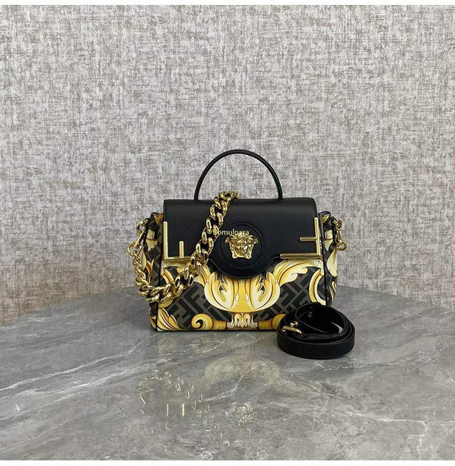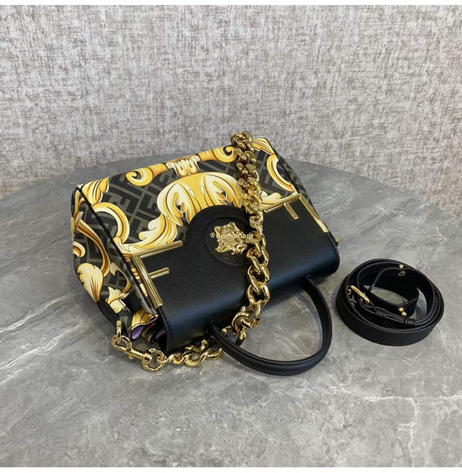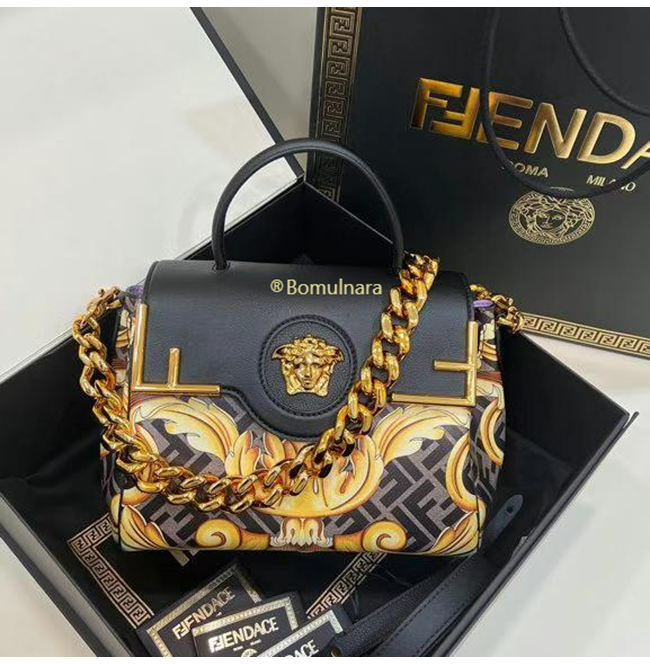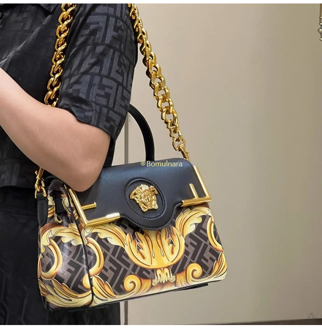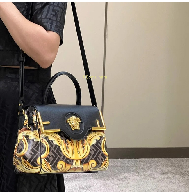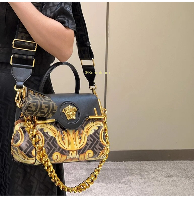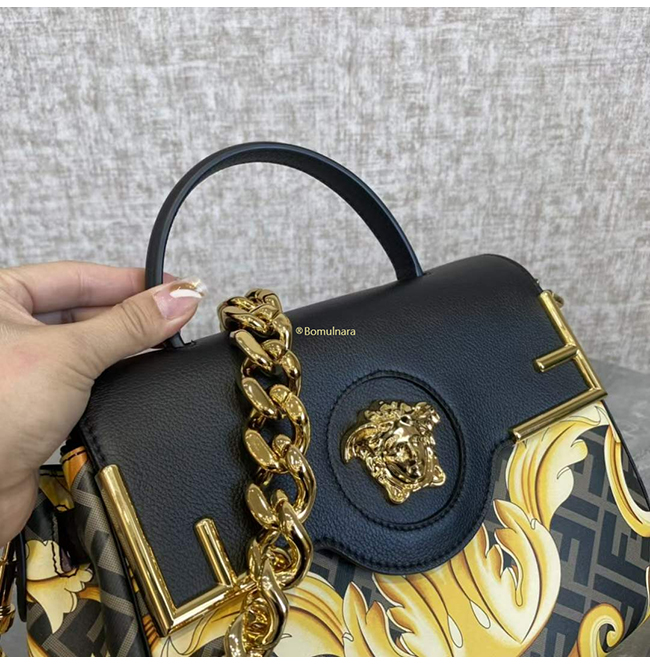 [스페셜오더]FENDI X VERSACE DBFI039 펜디 X 베르사체 펜다체 메두사 골드 바로크 블랙 미디엄 핸드백