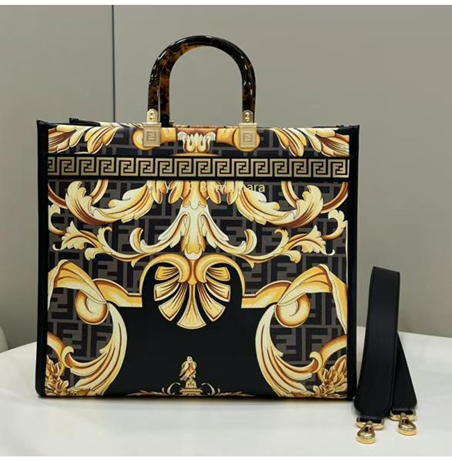 [스페셜오더]FENDI X VERSACE-8BH386 펜디 펜다체 선샤인 골드 로고 프린트 미디엄 쇼퍼 백
