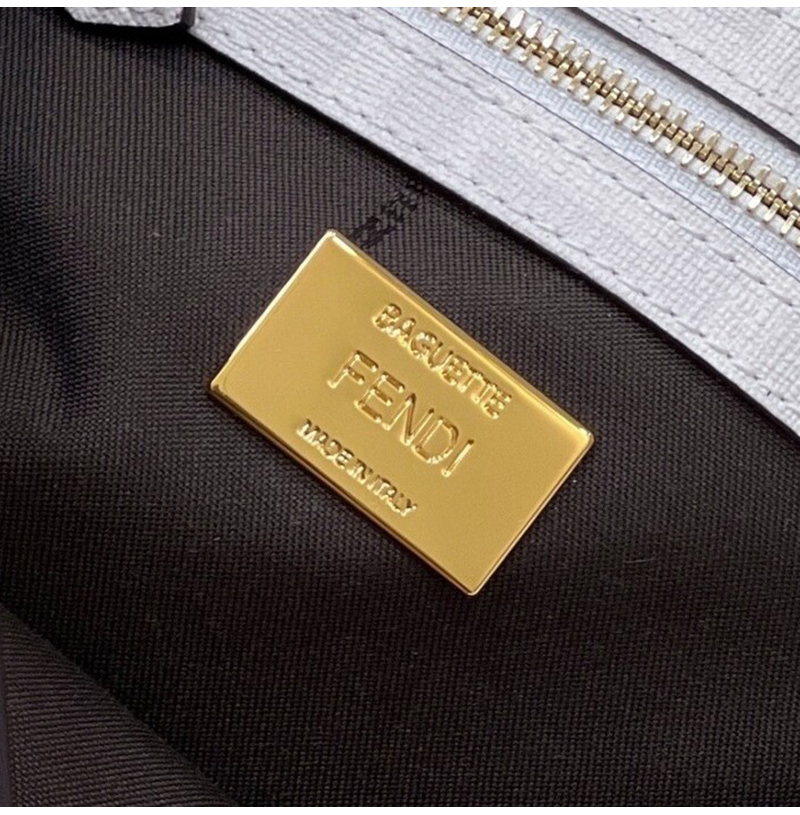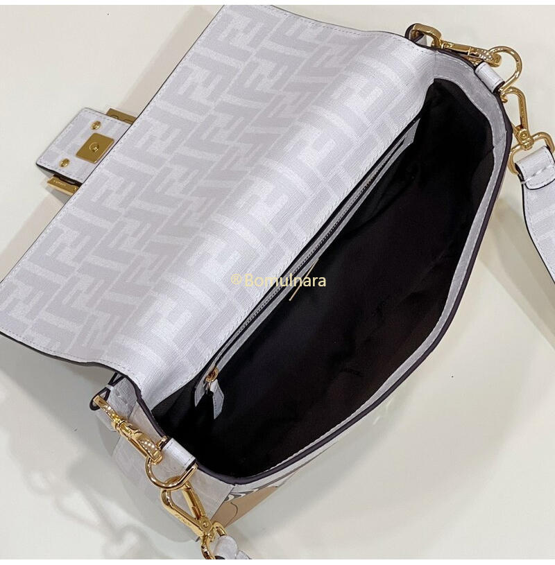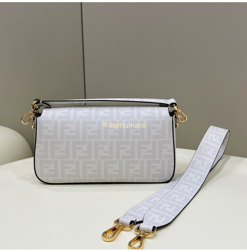 [스페셜오더]FENDI-8BR600 펜디 화이트 FF 글레이즈 패브릭 인레이 미디엄 바게트 백