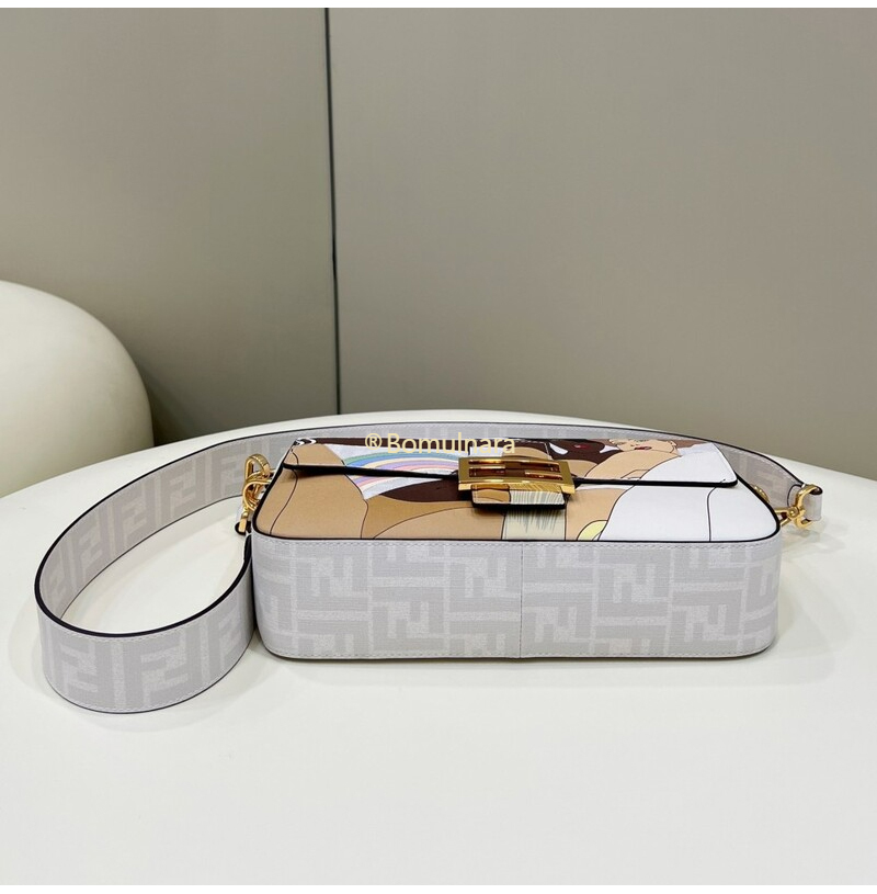 [스페셜오더]FENDI-8BR600 펜디 화이트 FF 캔버스 레이저컷 레터링 스트랩 바게트 백 27CM 가격 : 520,000원
