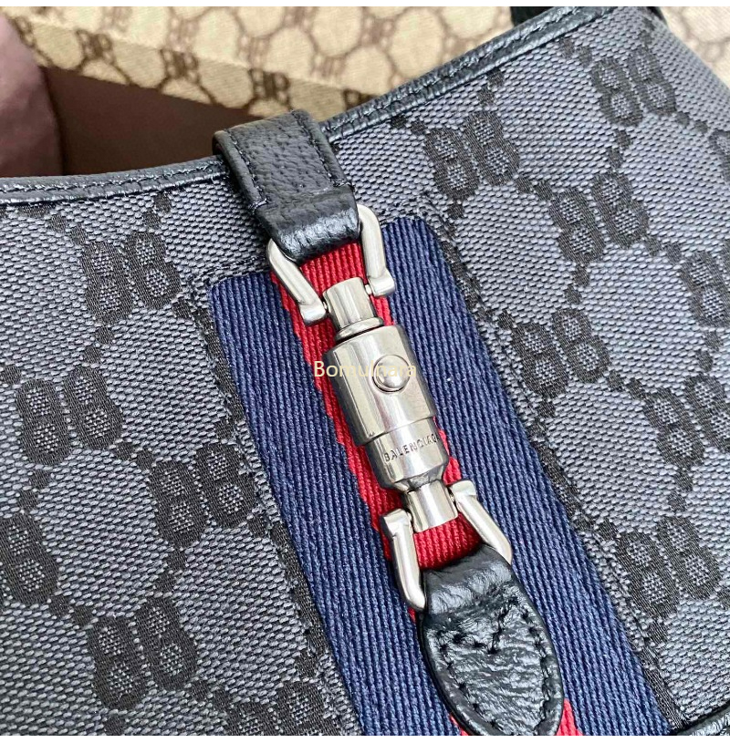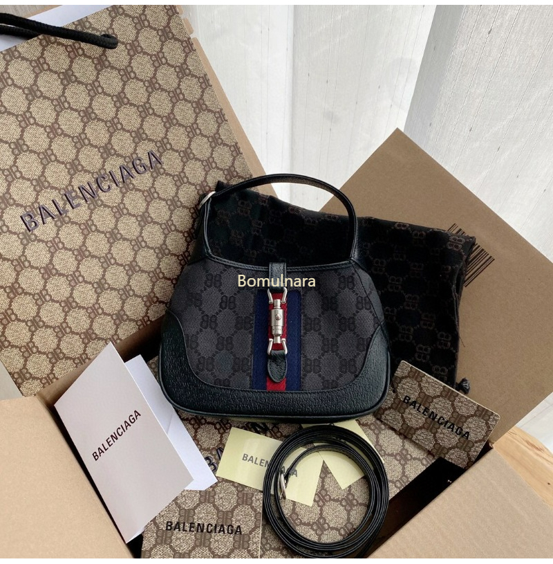 GUCCI-680118 구찌 × 발렌시아가 HACKER 블랙 BB 캔버스 재키 1961 스몰 호보백