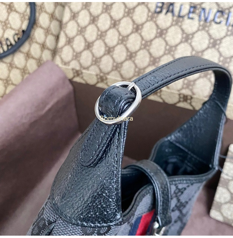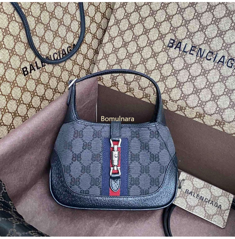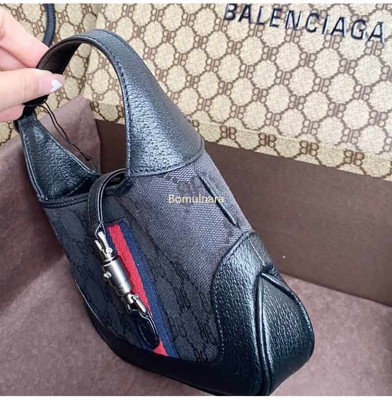 GUCCI-680132 구찌 × 발렌시아가 HACKER 블랙 BB 캔버스 재키 1961 미니 호보백