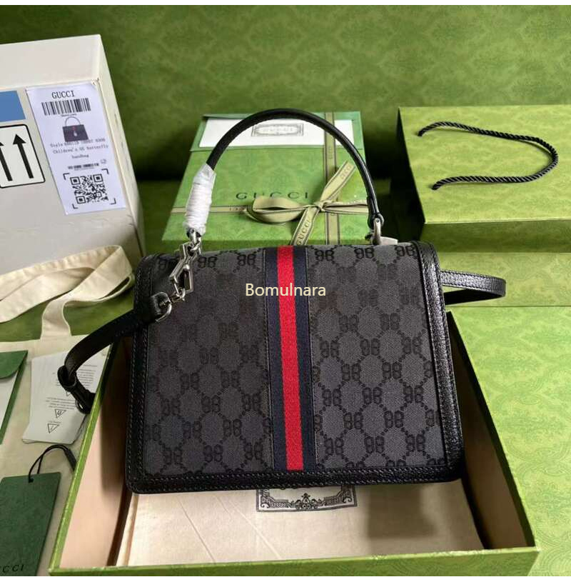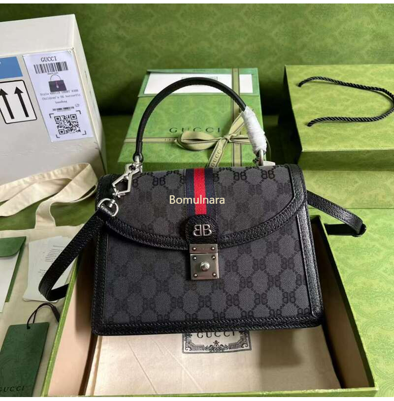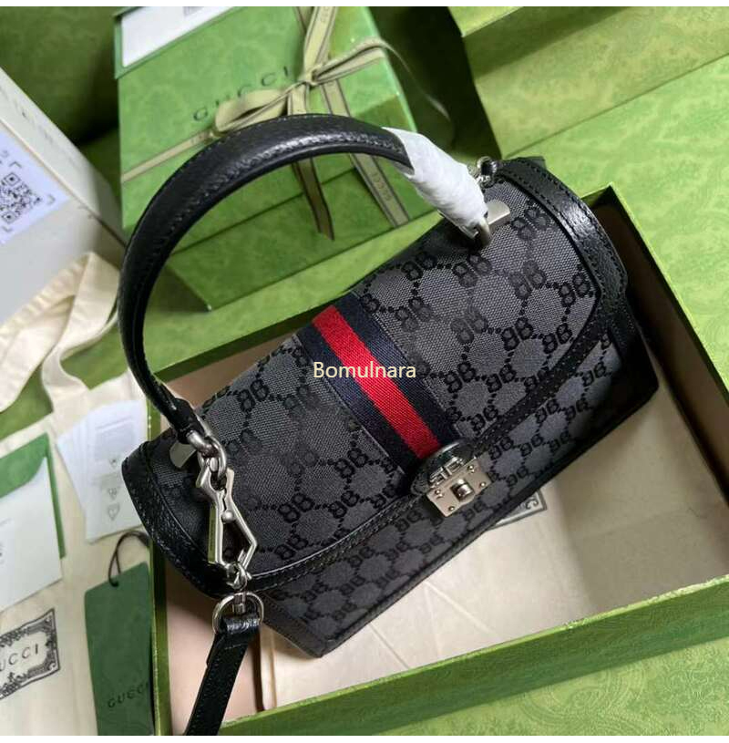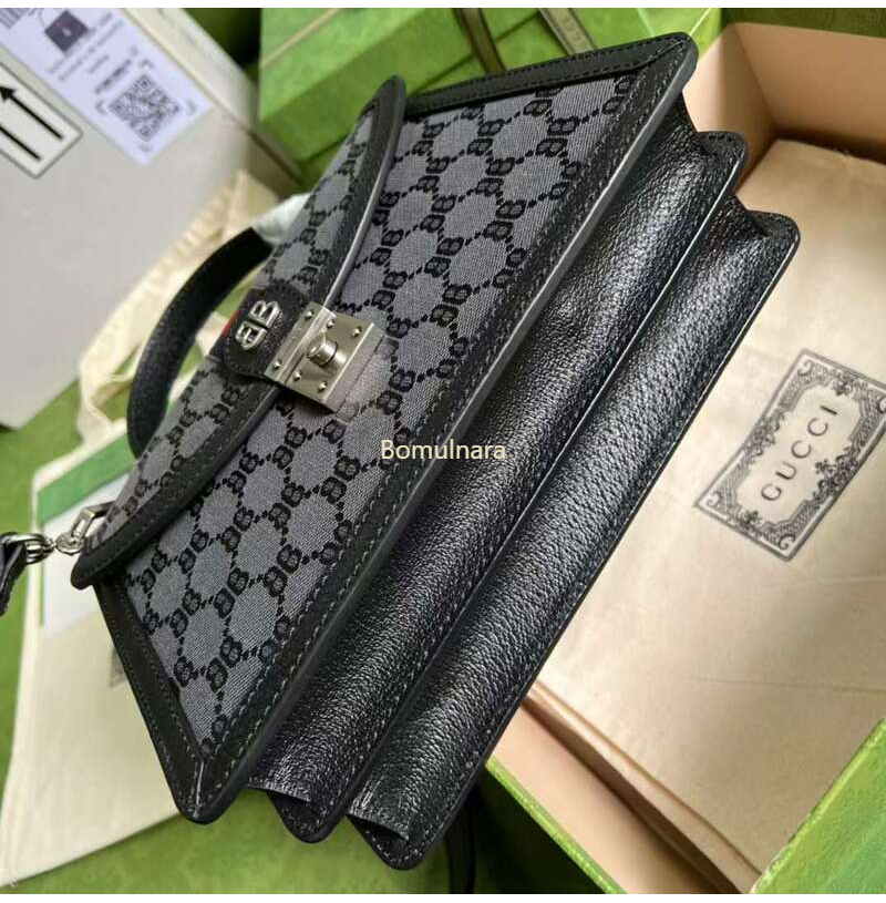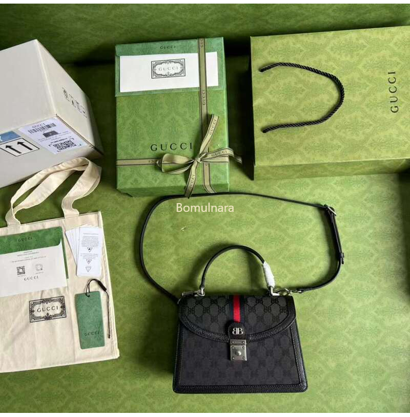 GUCCI-680119 구찌 × 발렌시아가 HACKER 블랙 BB 캔버스 스몰 탑 핸들 백