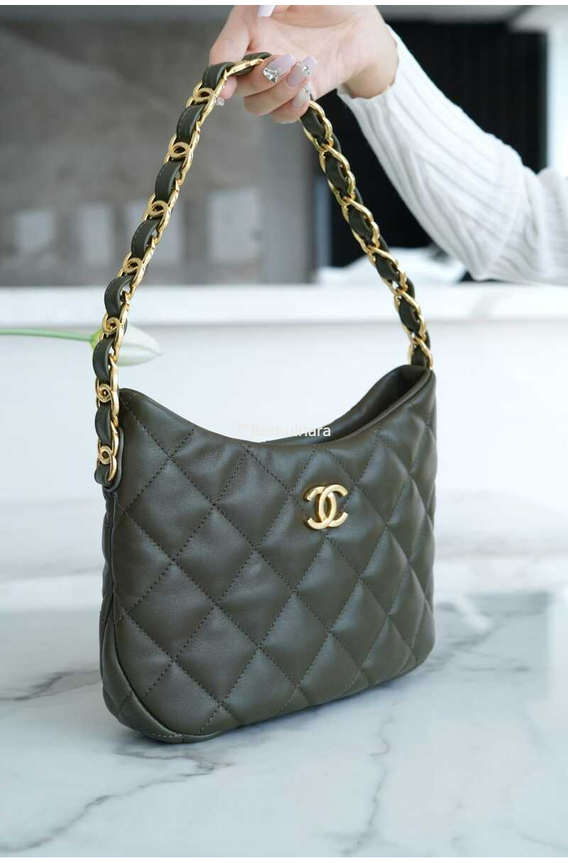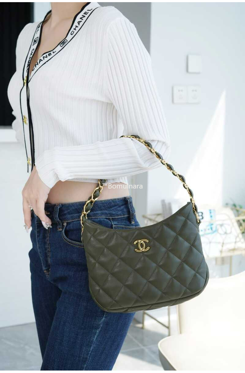CHANEL-AS3562 샤넬 카키 램스킨 스몰 호보 핸드백
