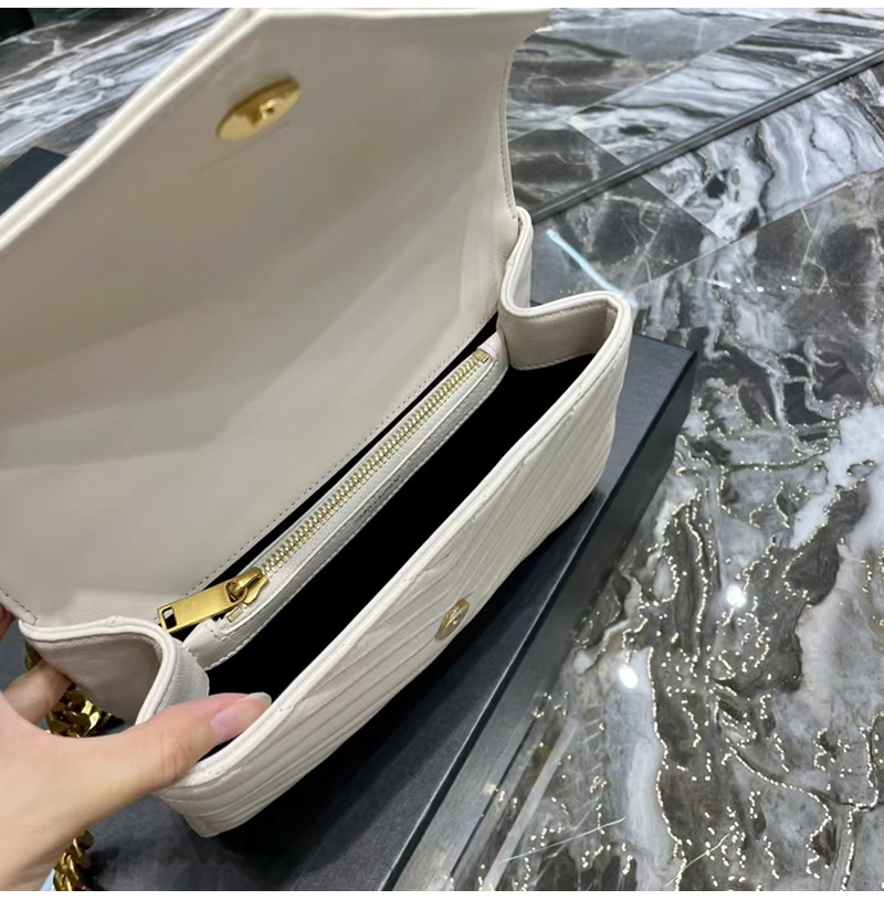 [스페셜오더]SAINT LAURENT-600279 생 로랑 화이트 퀼트 가죽 COLLEGE 미디엄백