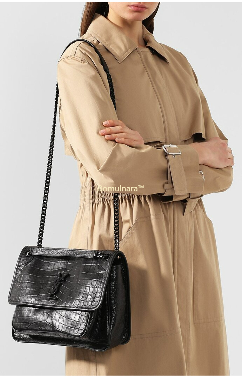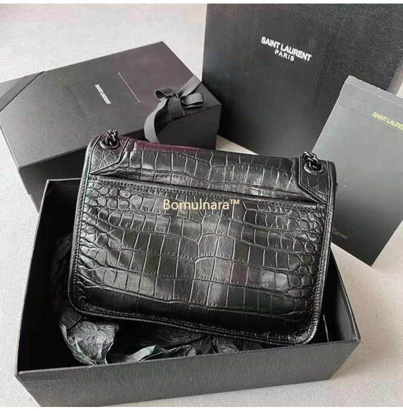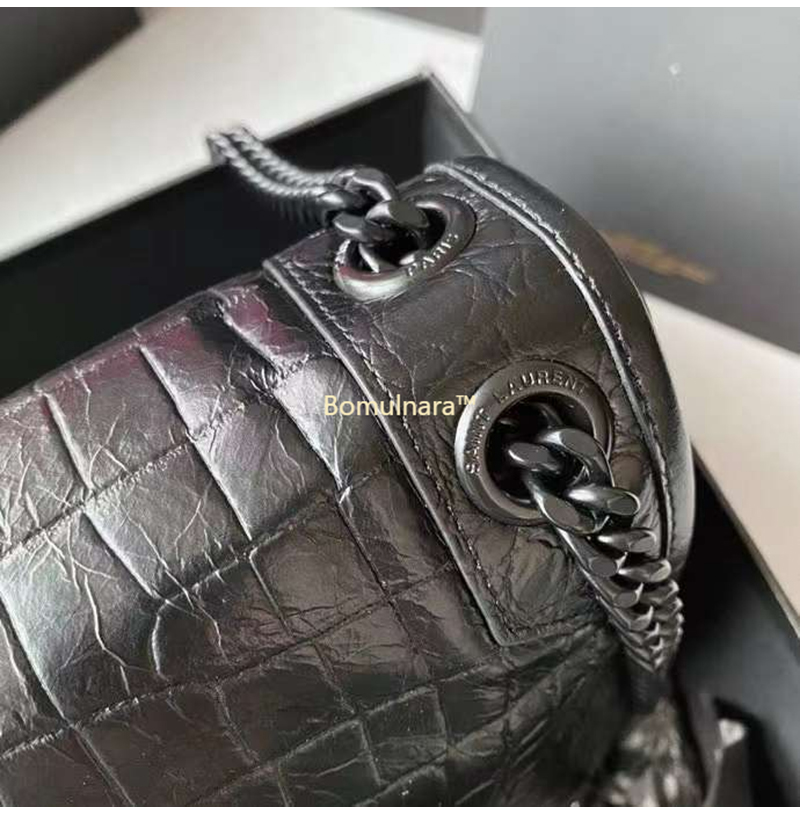 [스페셜오더]SAINT LAURENT-633150 생 로랑 블랙 크로커다일 양각 무늬 빈티지 NIKI 미디엄 숄더 백
