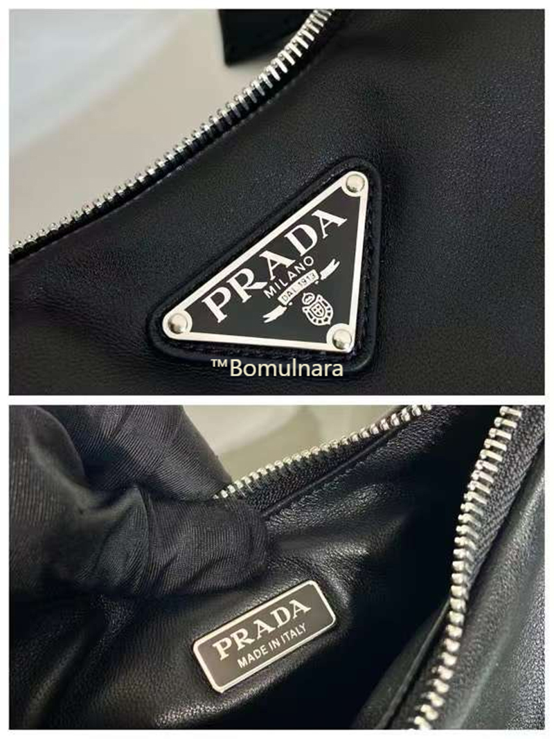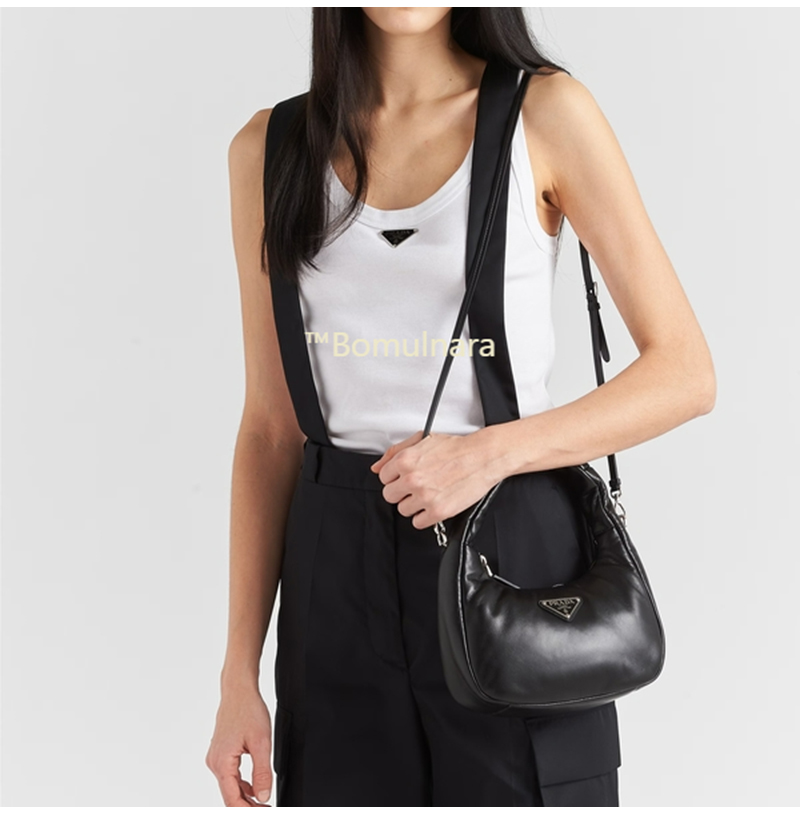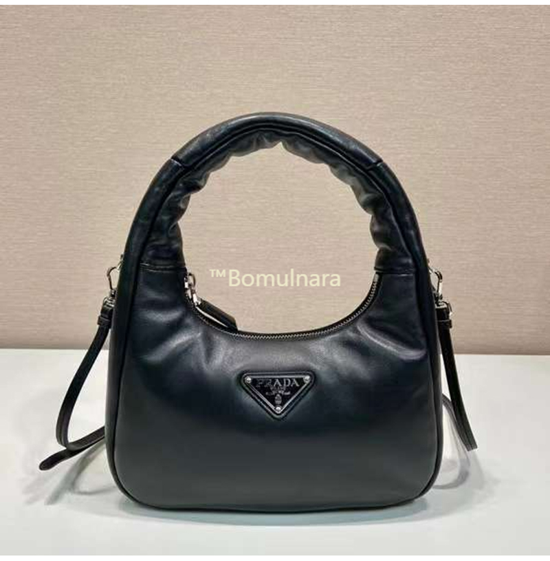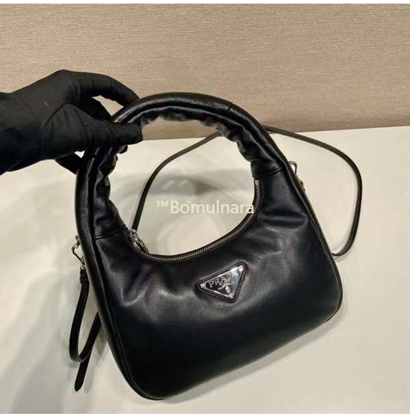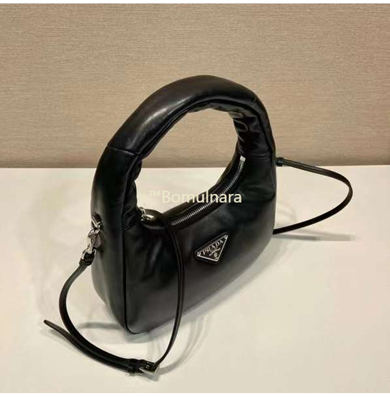 [스페셜오더]PRADA-1BA384 프라다 블랙 소프트 패딩 나파 가죽 미니 호보백