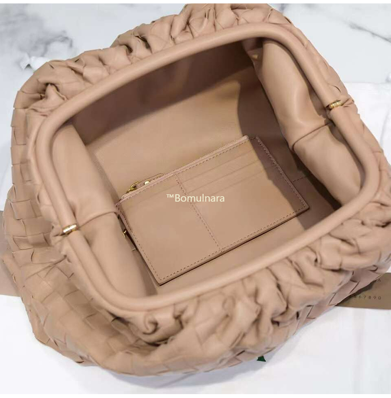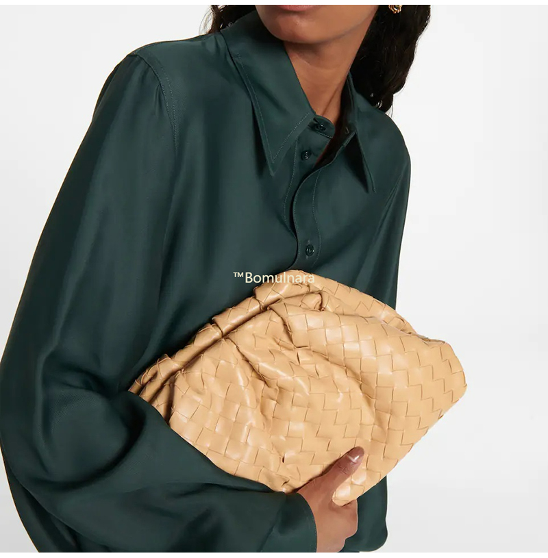 가죽 소재를 인트레치아토 위빙으로 완성한 클러치