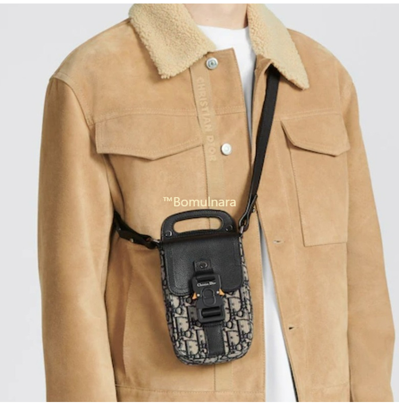 [스페셜오더]DIOR-2ADCA4 디올 베이지&블랙 Dior Oblique 자카드 SADDLE 스트랩 버티컬 파우치