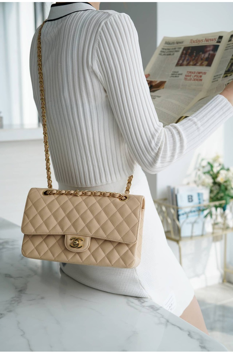[스페셜오더]CHANEL-A01113 샤넬 클래식 베이지 캐비어 골드 스몰 플랩 백 23CM