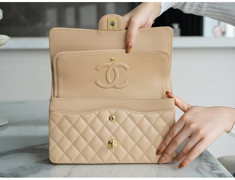 CHANEL-A01113 샤넬 클래식 베이지 캐비어 골드