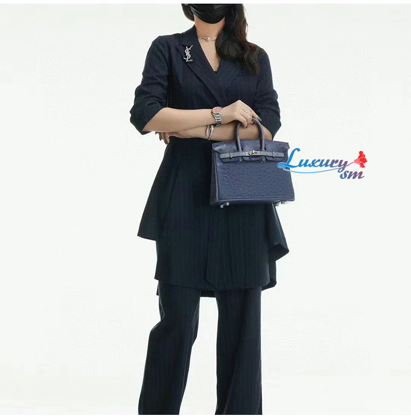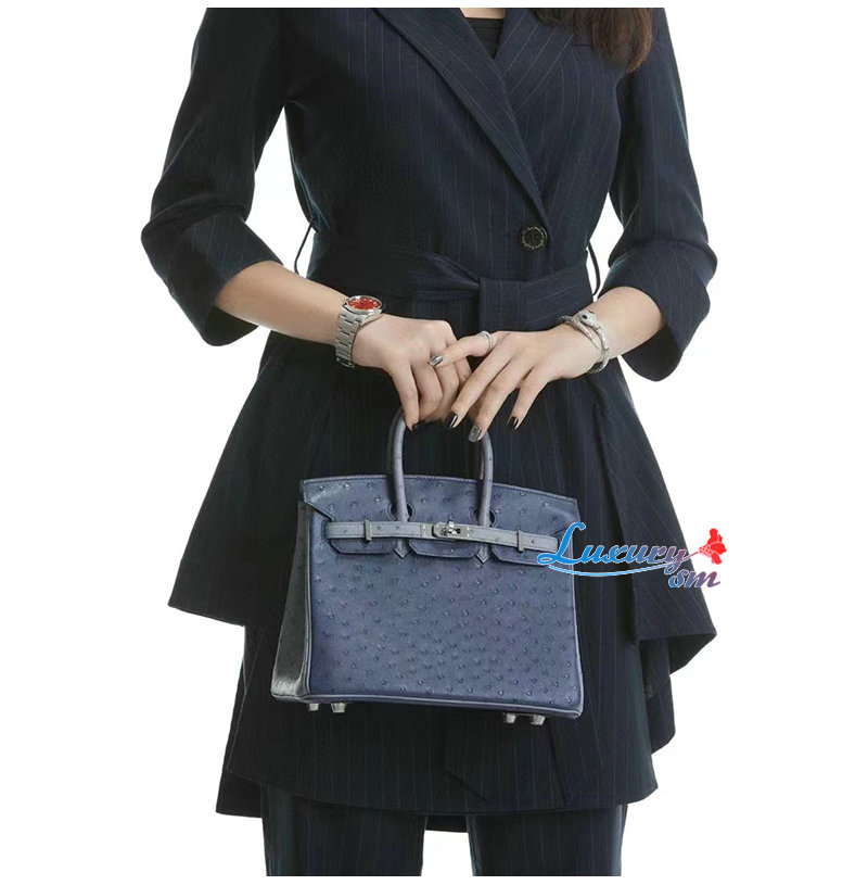 [스페셜오더]HERMES-BK25 에르메스 네이비 타조 가죽 Birkin 25