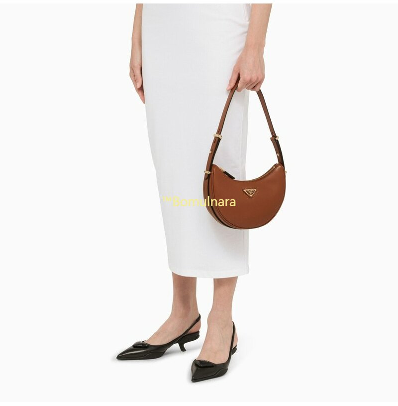 [스페셜오더]PRADA-1BC194 프라다 코냑 트라이앵글 로고 하프문 숄더백