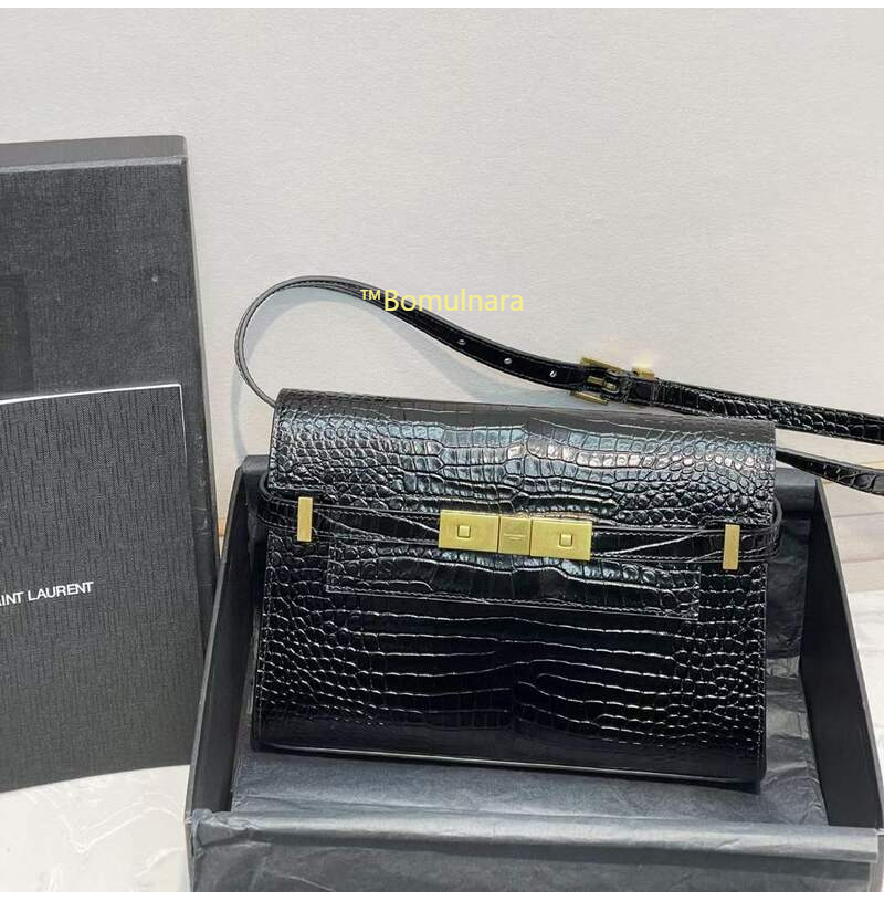 [스페셜오더]SAINT LAURENT-675626 생 로랑 블랙 맨하탄 크로커다일 엠보스드 스몰 숄더백