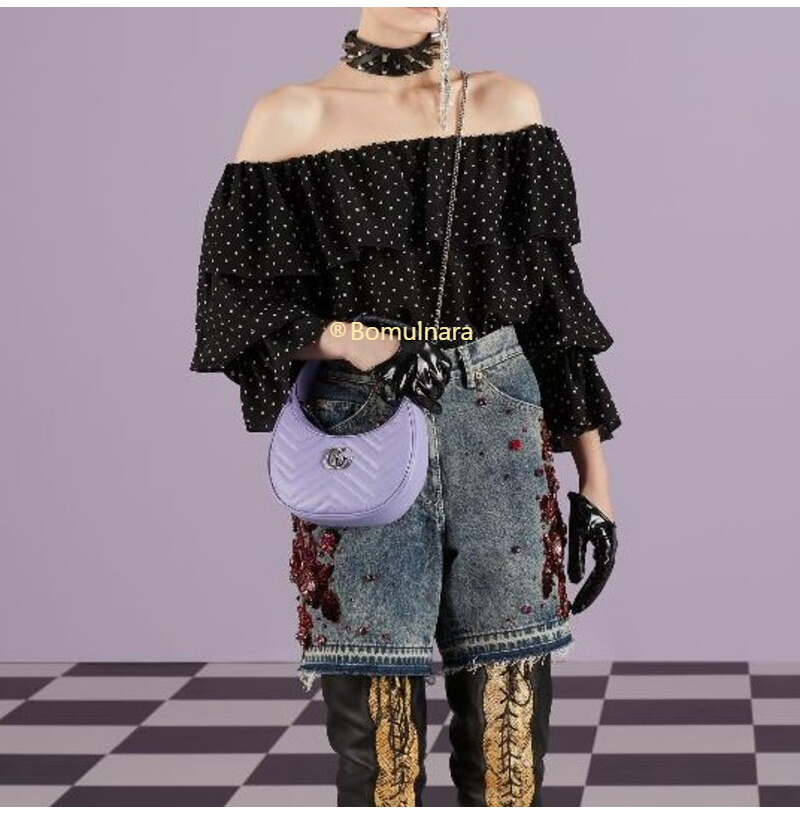 [스페셜오더]GUCCI-699514 5306 구찌 라일락 GG 마몽 마틀라세 하프문 쉐입 체인 미니백