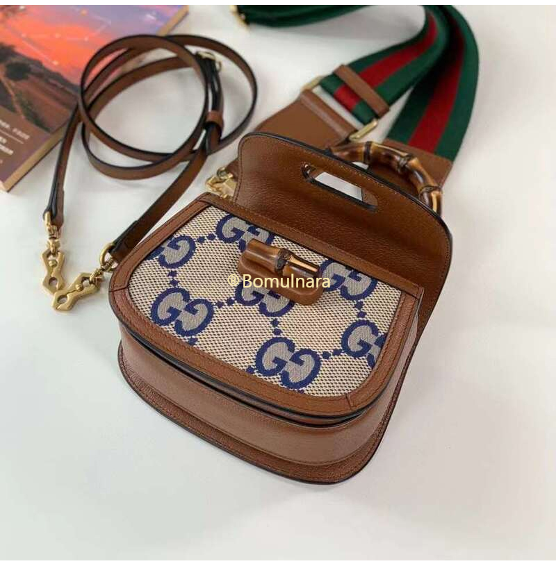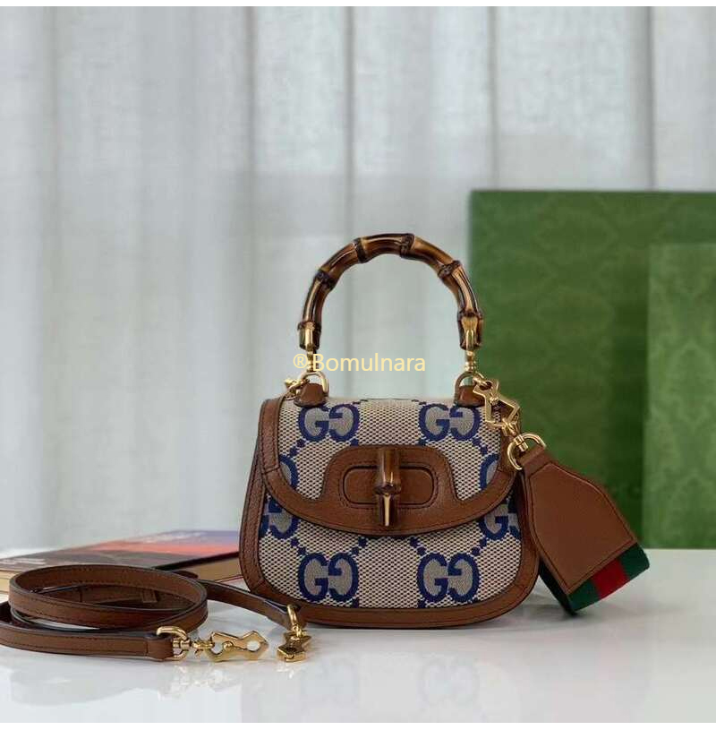 [스페셜오더]GUCCI-675797 2568 구찌 블루/베이지 맥시 GG 뱀부 1947 코리아 익스클루시브 스몰 핸드백 가격 : 420,000원