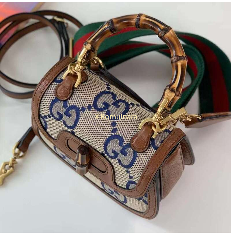 [스페셜오더]GUCCI-686864 2568 구찌 블루/베이지 맥시 GG 뱀부 1947 코리아 익스클루시브 미니 탑 핸들백