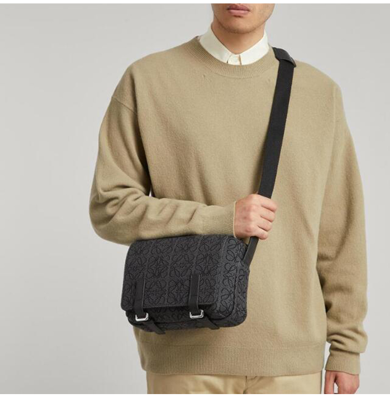 LOEWE-B553A 로에베 블랙 아나그램 자카드 밀리터리 XS 메신저백
