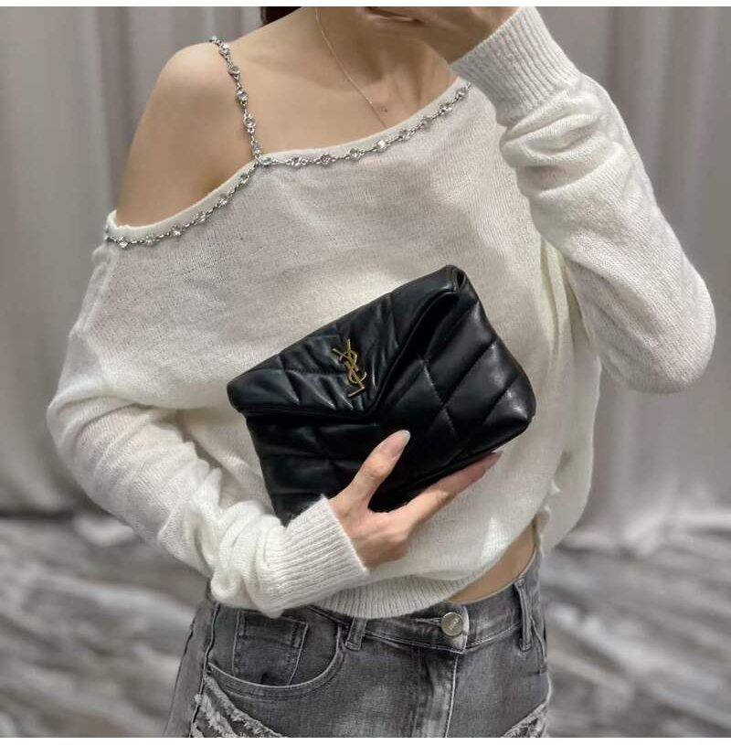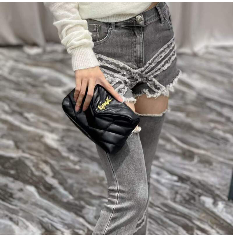[스페셜오더]SAINT LAURENT-650880 생 로랑 블랙 램스킨 퀼티드 블랙 메탈 퍼퍼 스몰 파우치