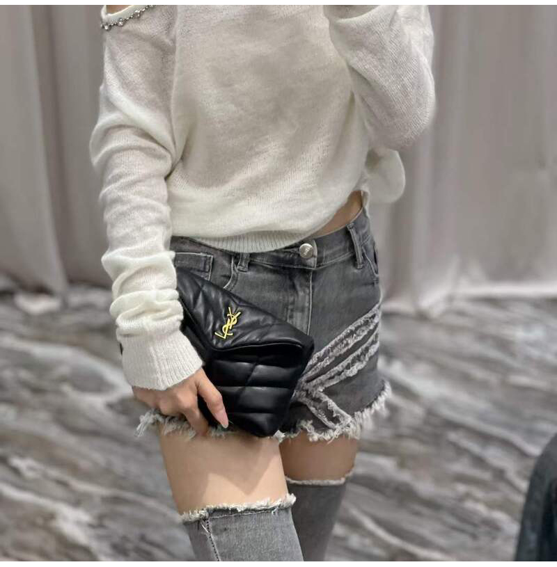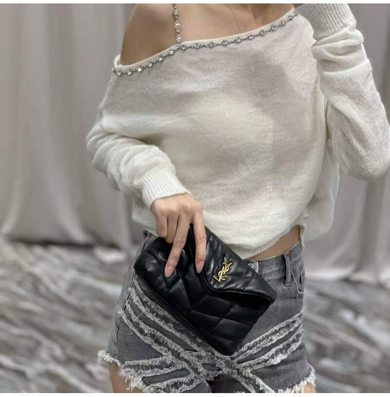 [스페셜오더]SAINT LAURENT-650880 생 로랑 블랙 램스킨 퀼티드 실버 퍼퍼 스몰 파우치