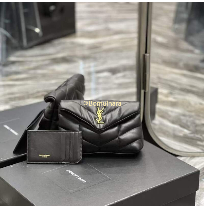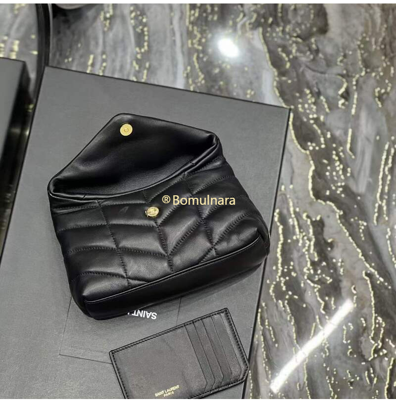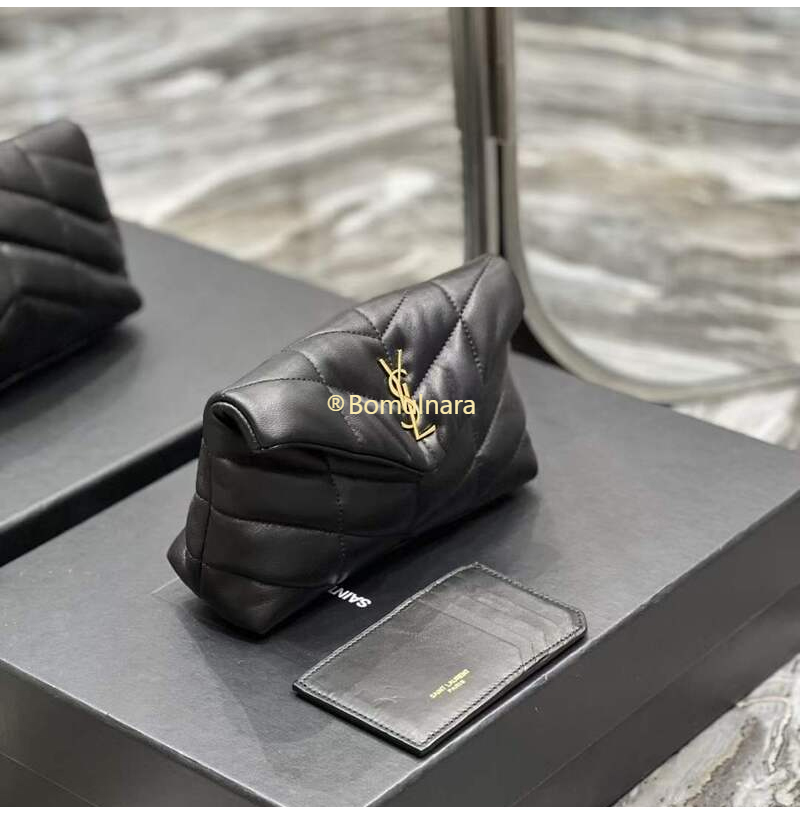 [스페셜오더]SAINT LAURENT-650880 생 로랑 블랙 램스킨 퀼티드 브론즈 퍼퍼 스몰 파우치